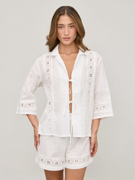 • מכנסיים קצרים תחרה דאני | לבן