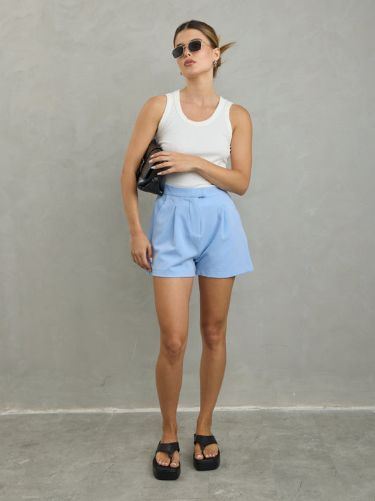• מכנסיים מחוייטים קצרים לנון | כחול
