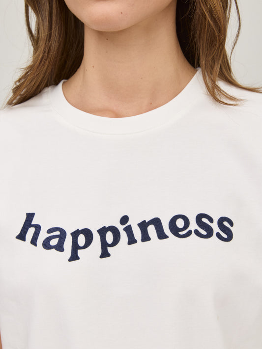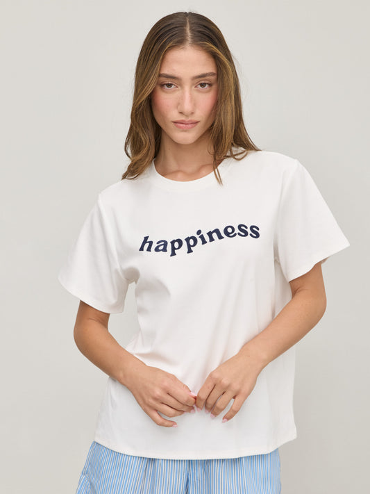 • טישירט פרינט HAPPINES | לבן