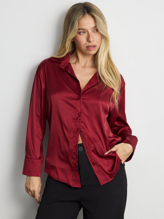 חולצה מכופתרת סאטן לוסיל | בורדו