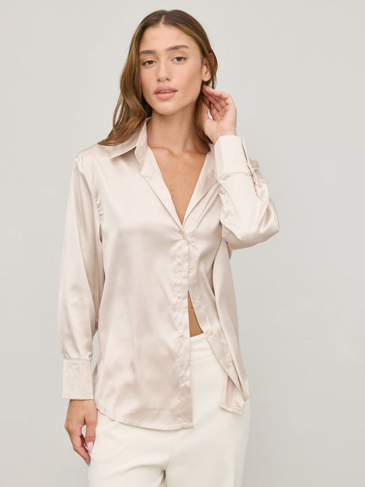 חולצה מכופתרת סאטן לוסיל | בז'