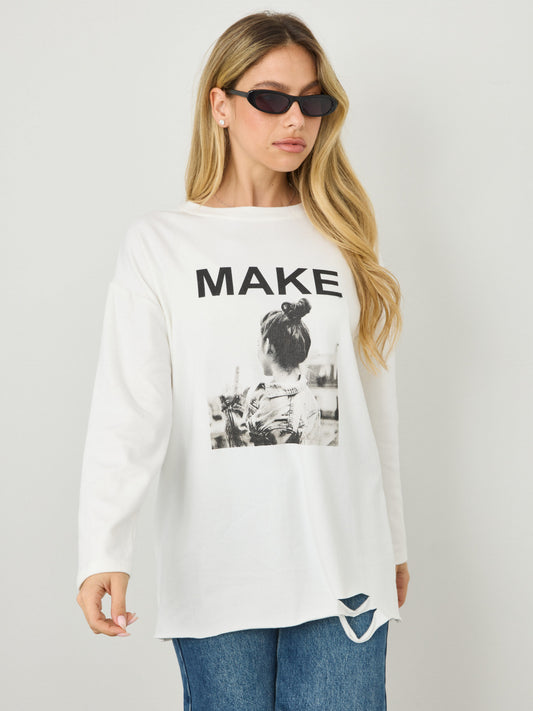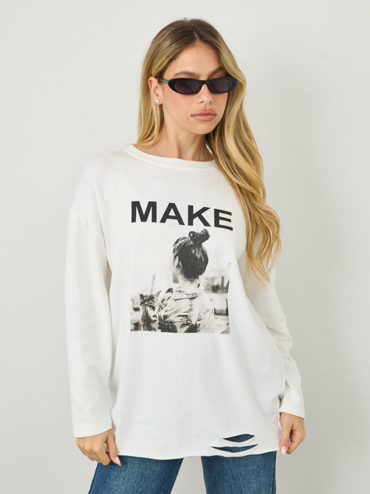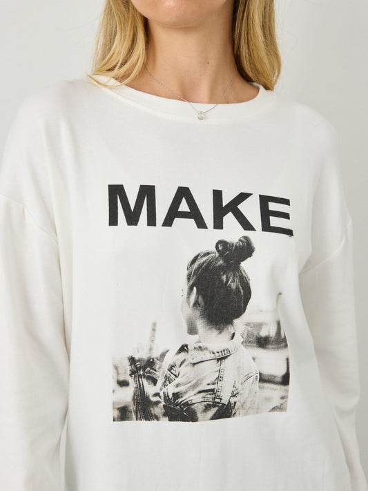 חולצה עם הדפס MAKE | לבן