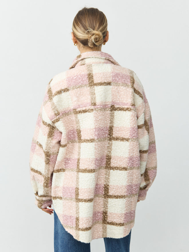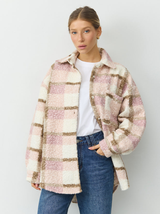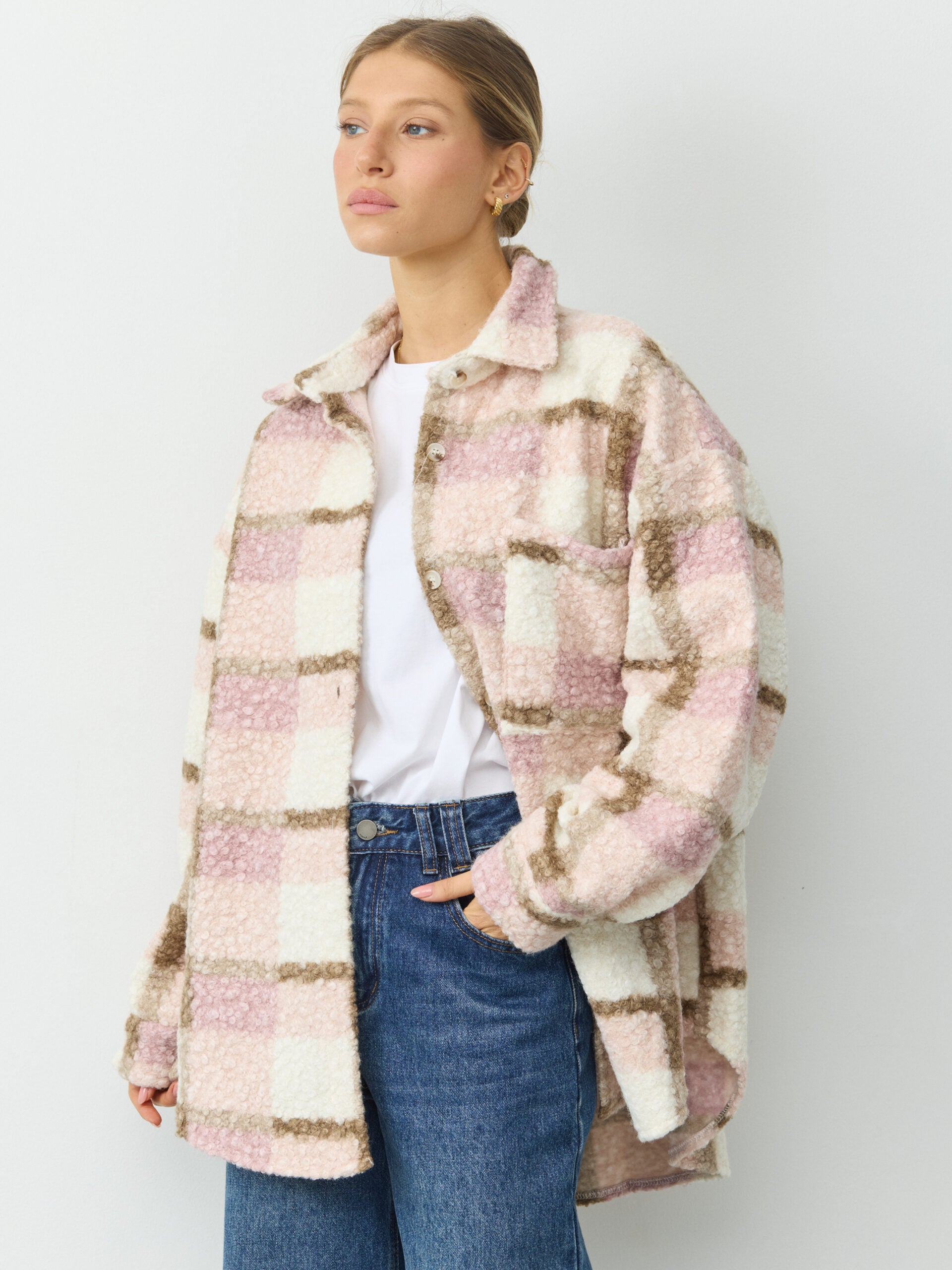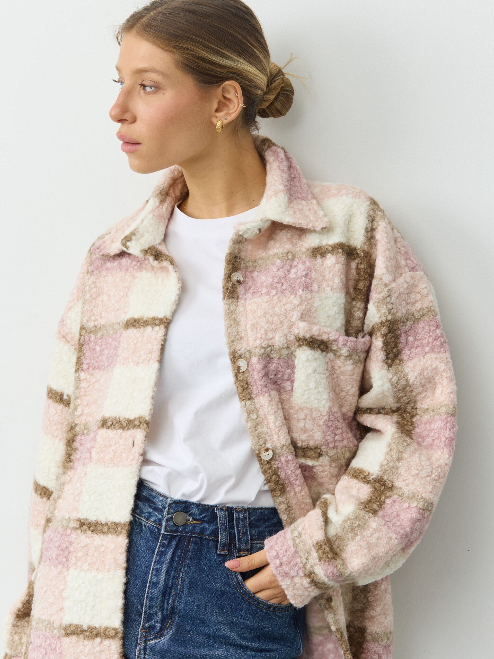 ג'קט דמוי לבד משבצות לוז | ורוד