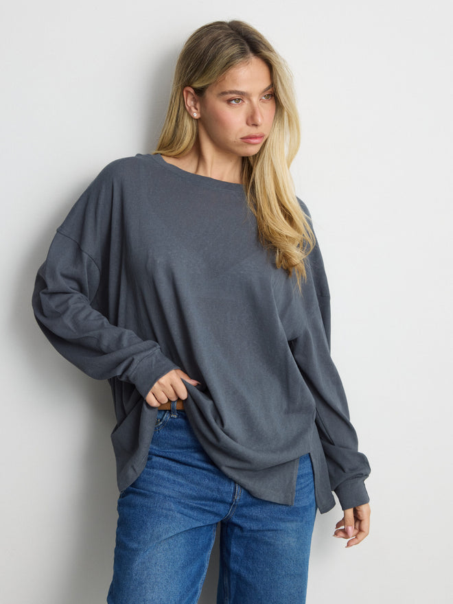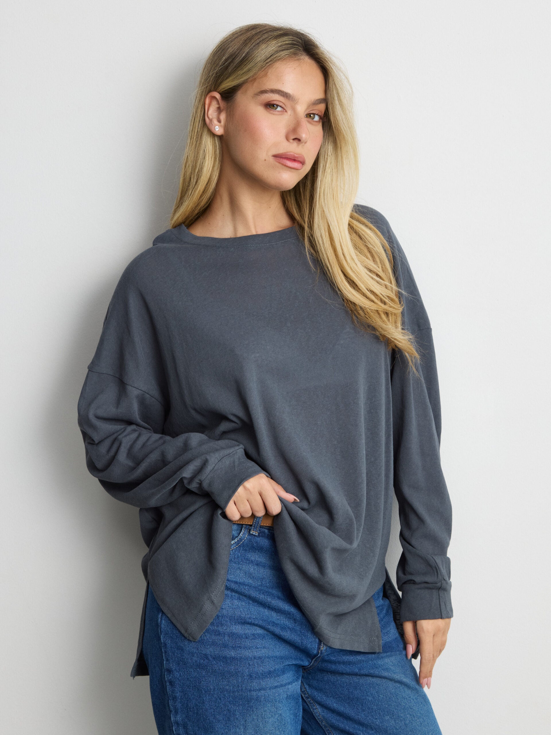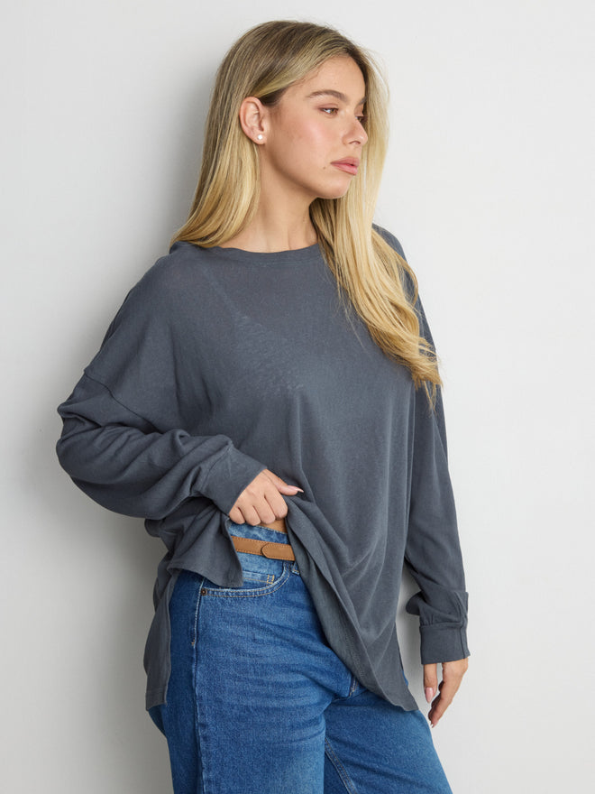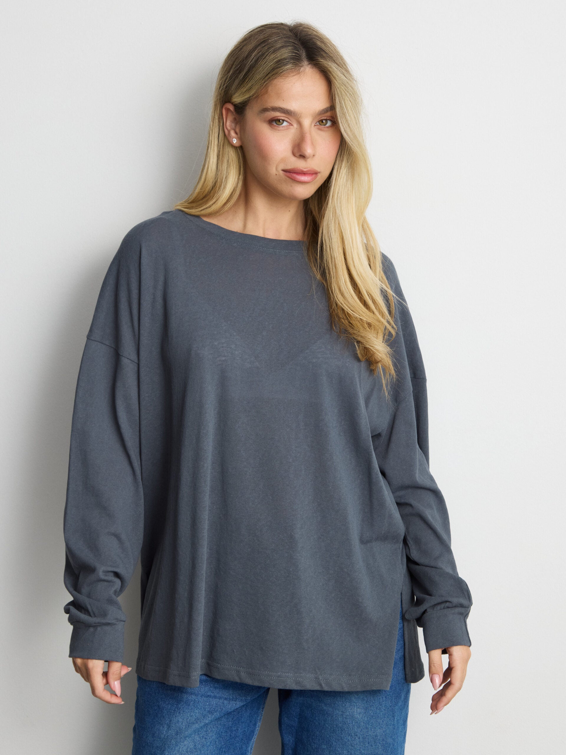 טישירט שרוול ארוך אוברסייז פגי | כחול