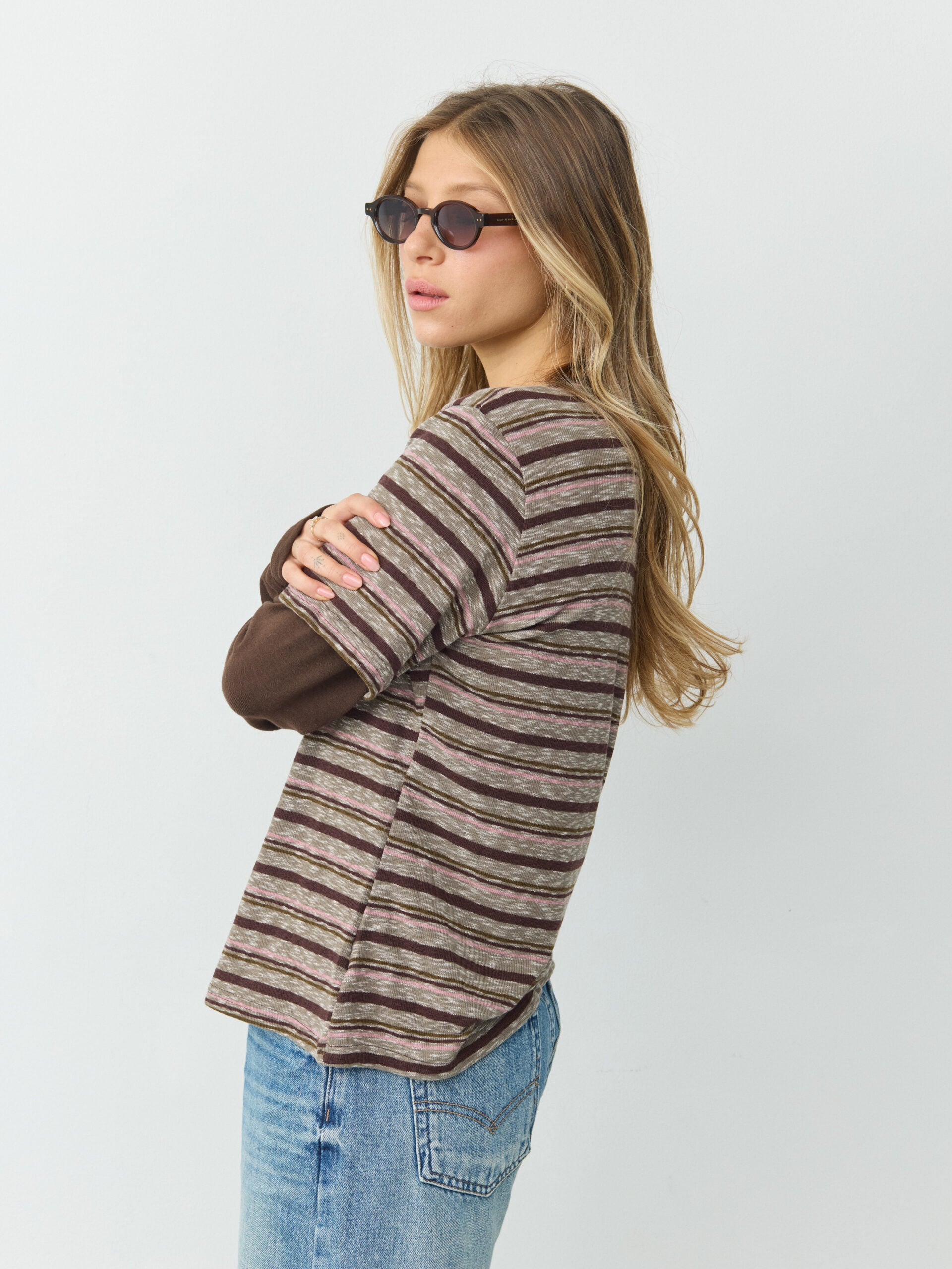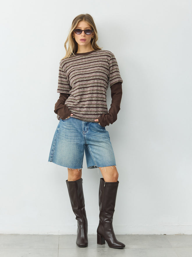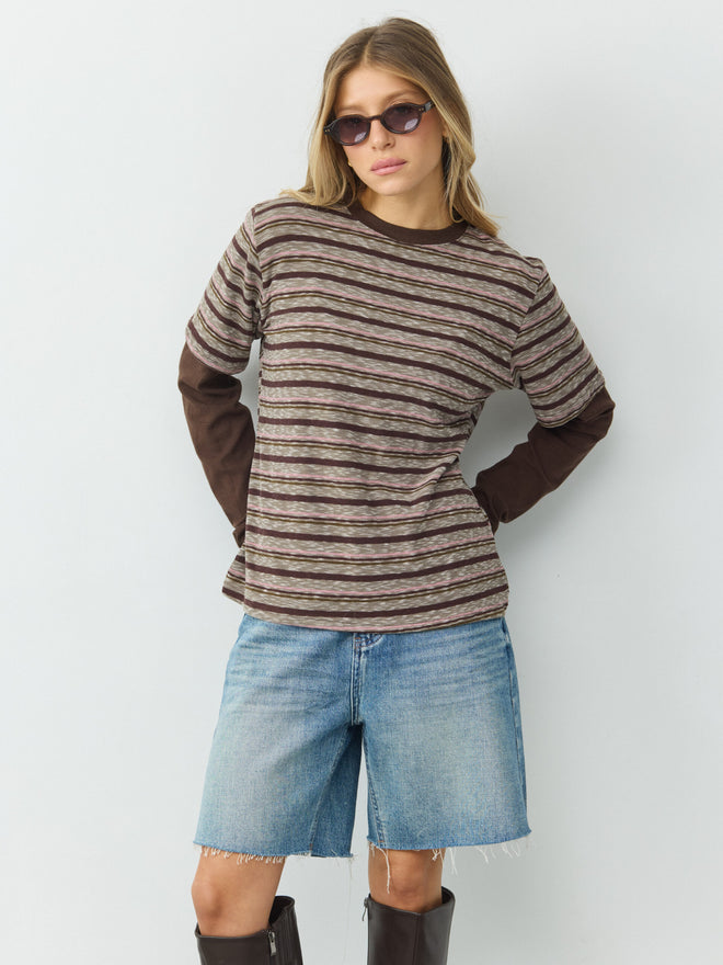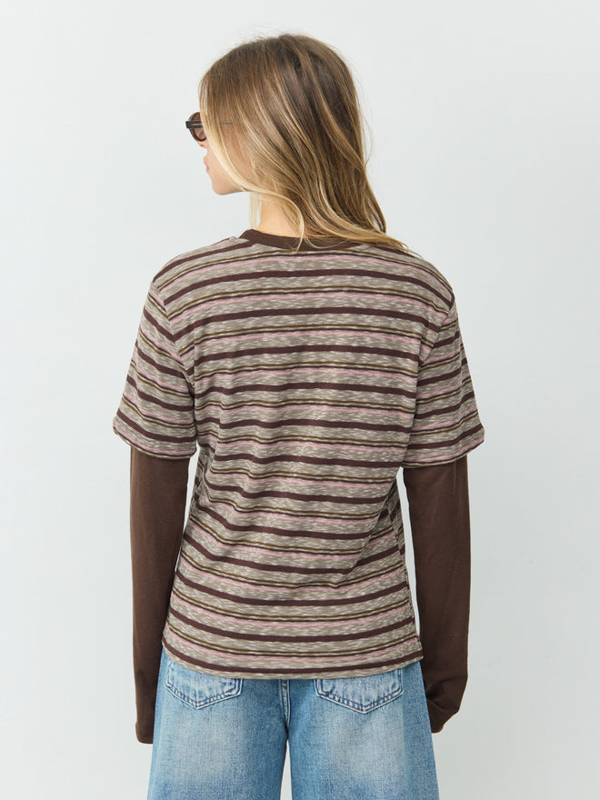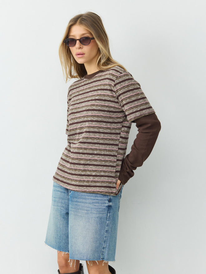 טישירט שתי שכבות פסים מיידן | חום