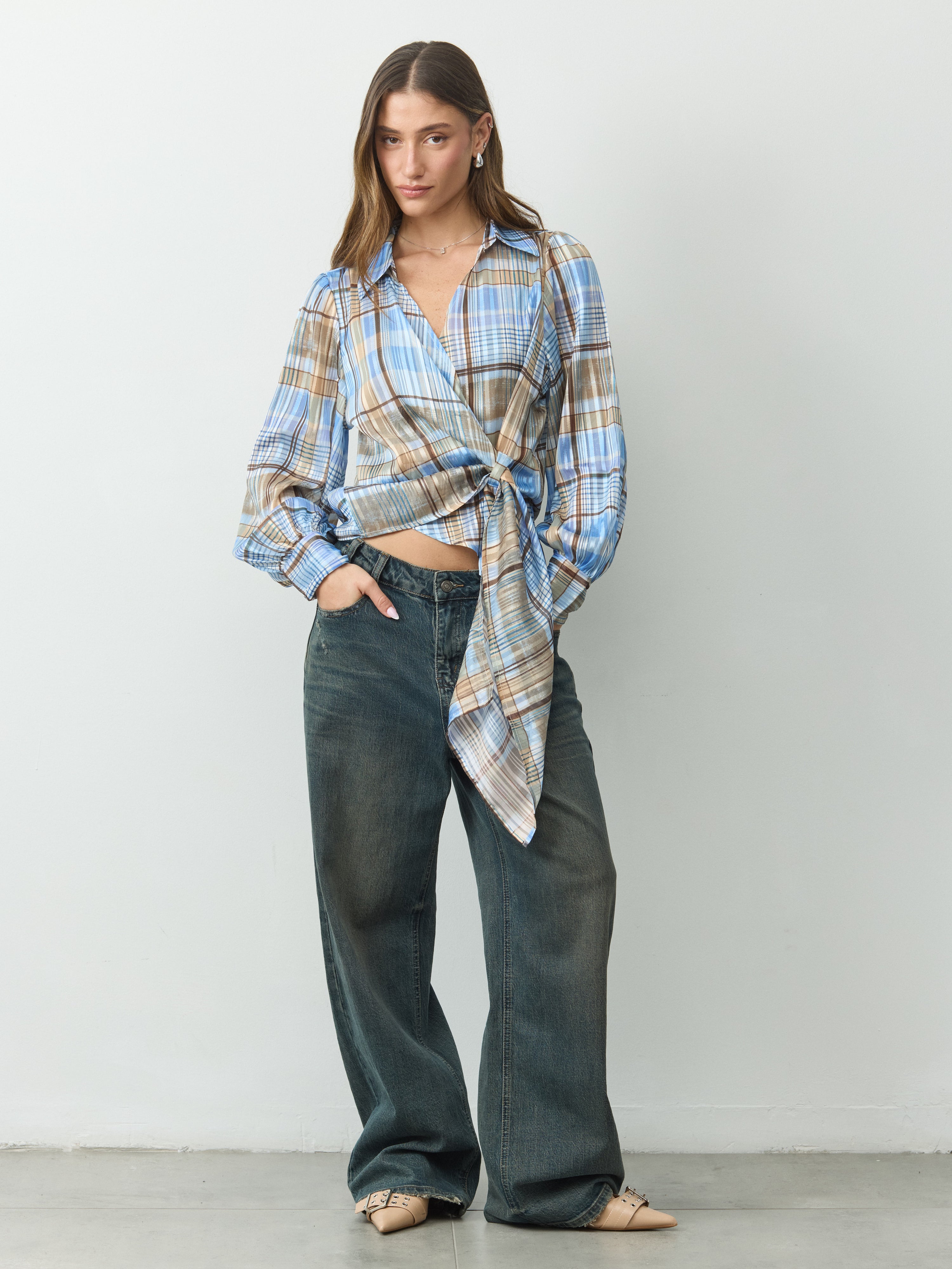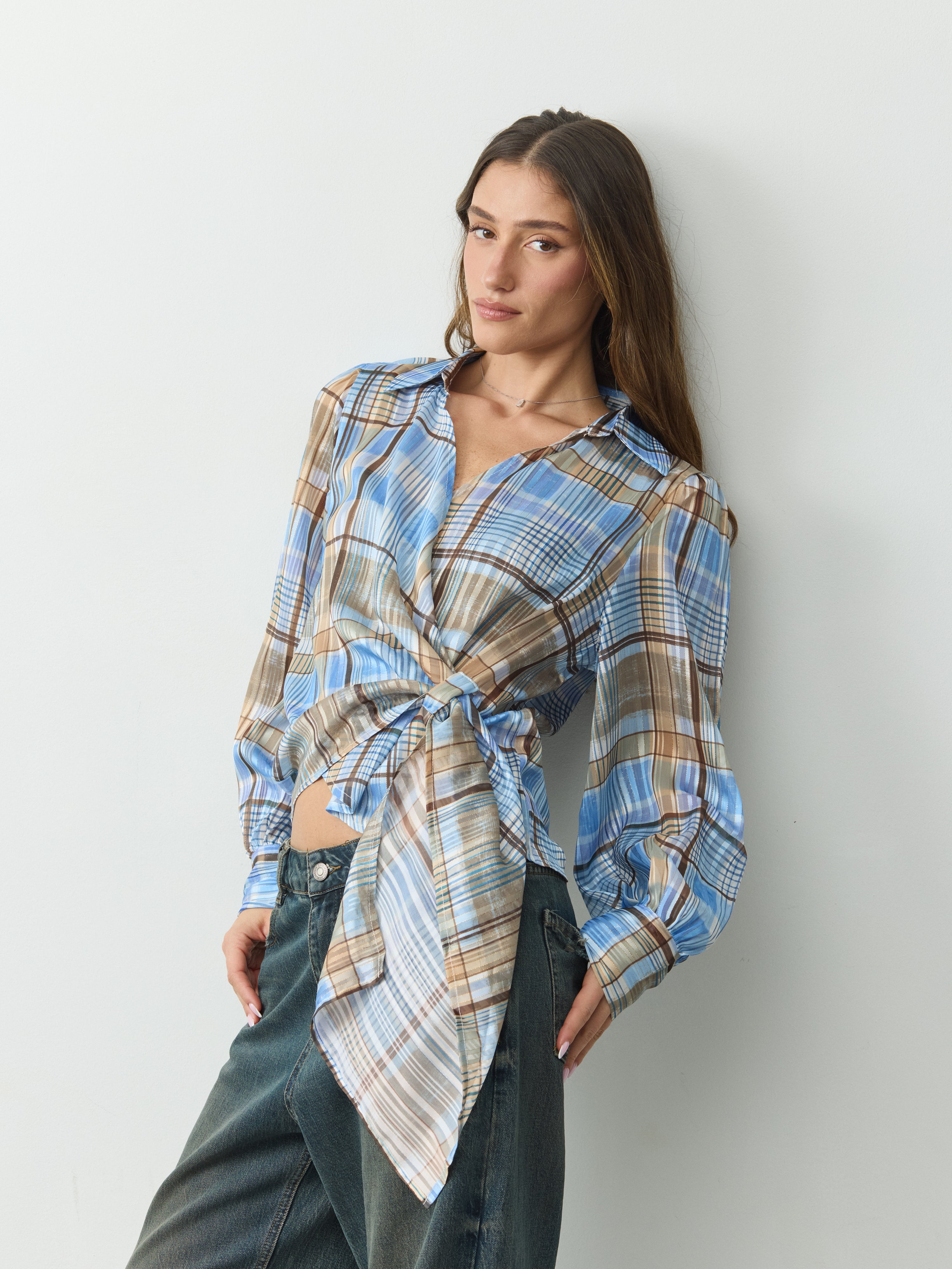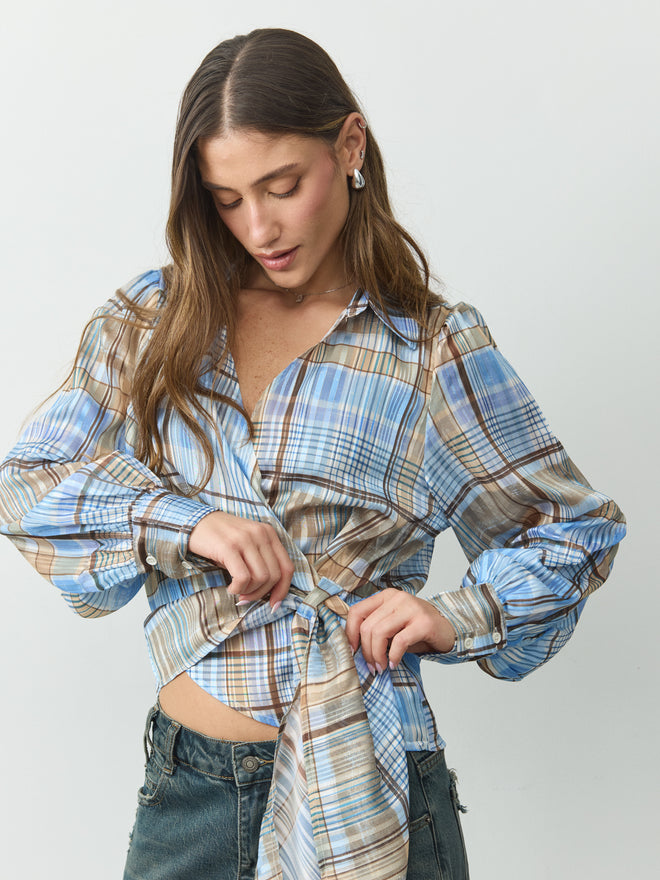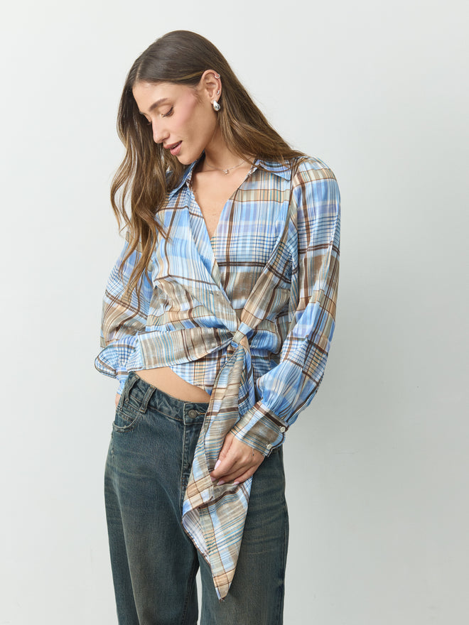 מכופתרת קשירה סקרלט | כחול