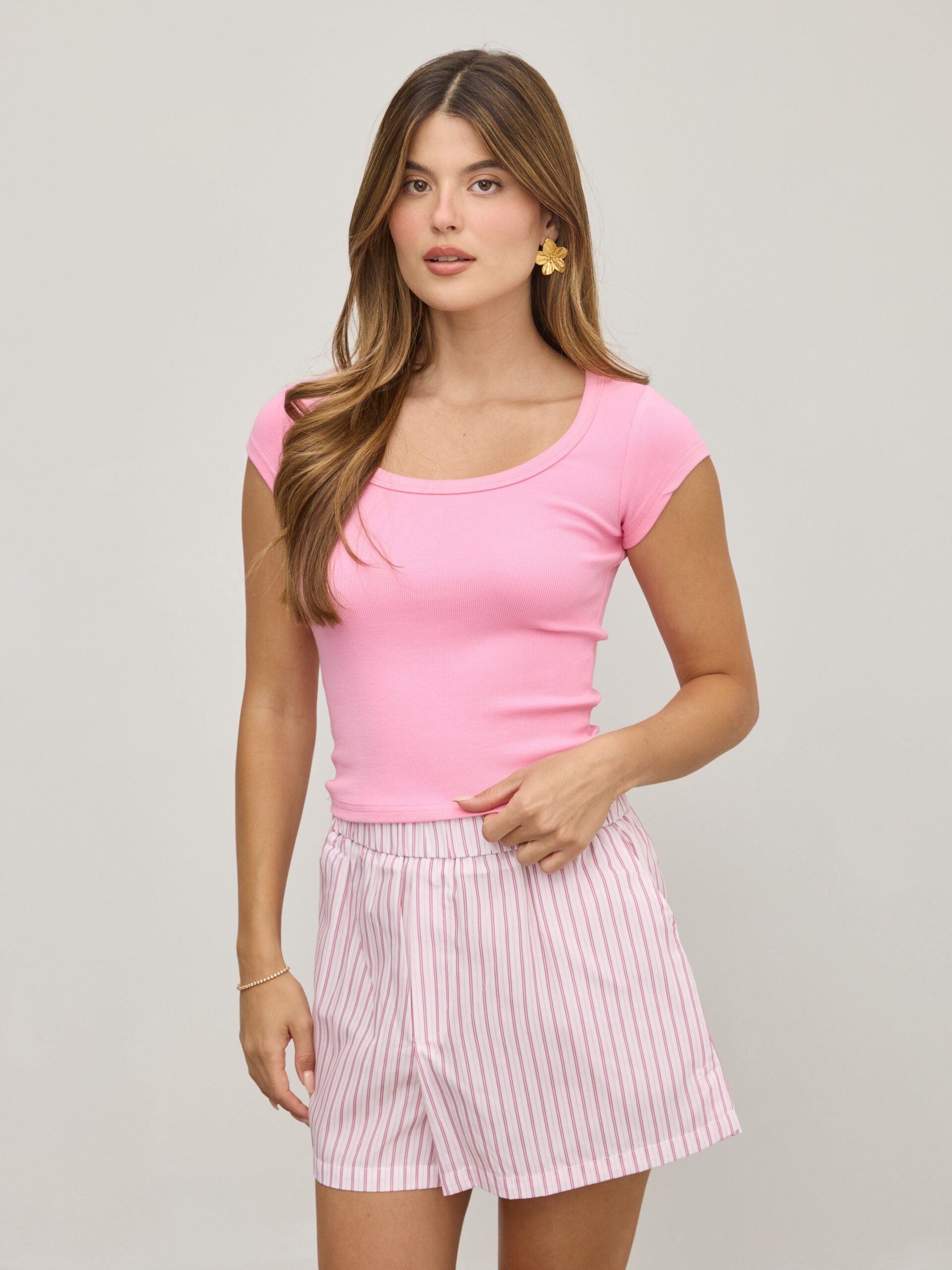 מכנסיים קצרים פסים פולי | ורוד