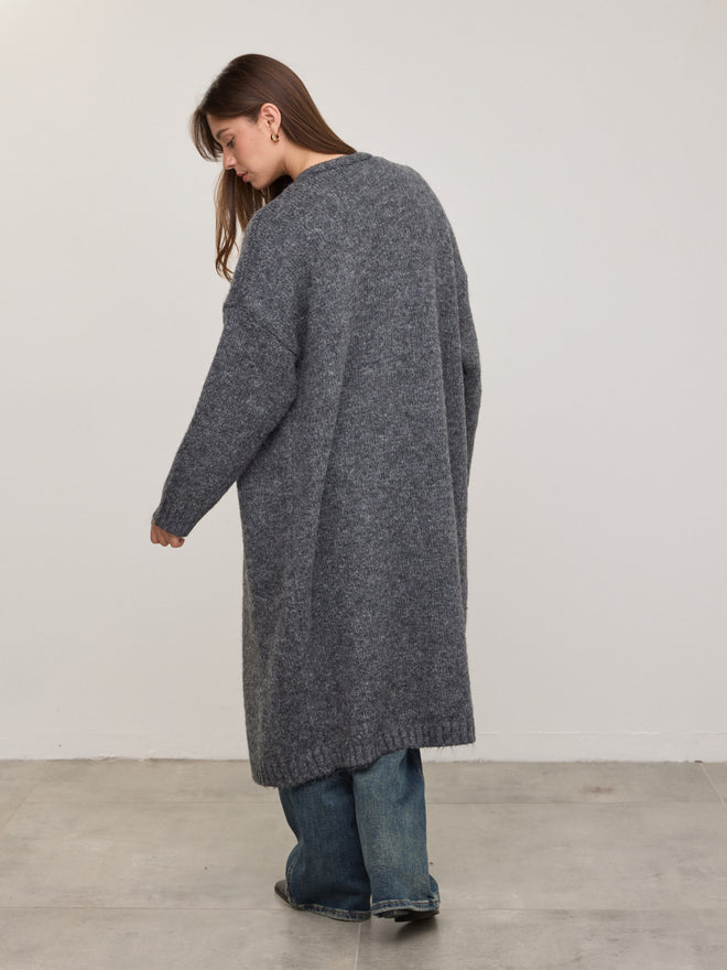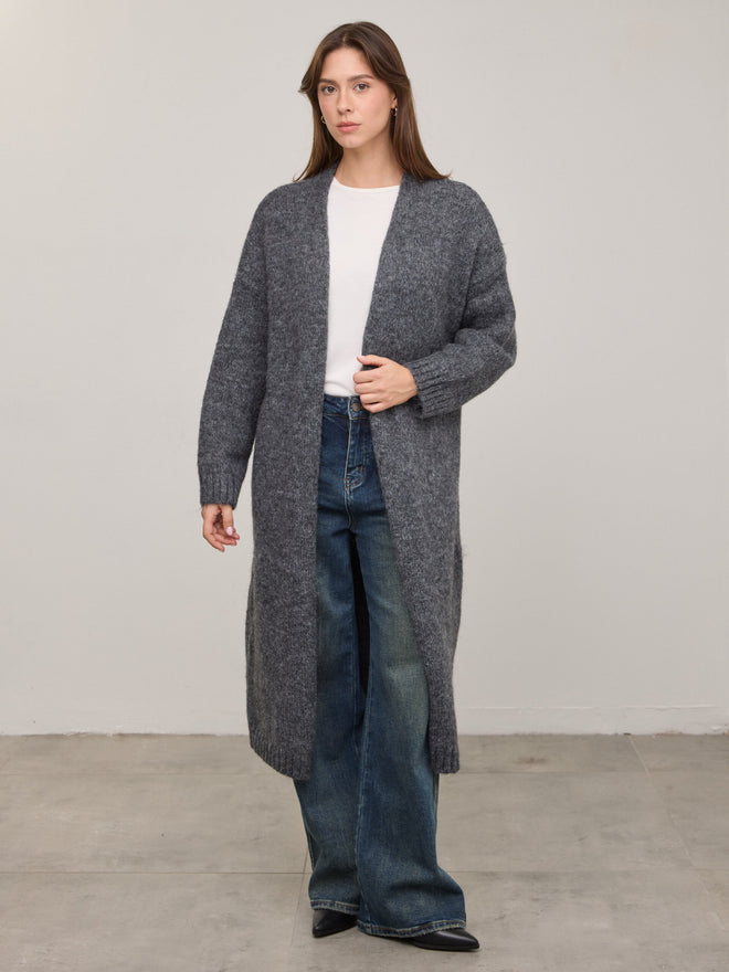 קרדיגן ארוך מילה | אפור כהה