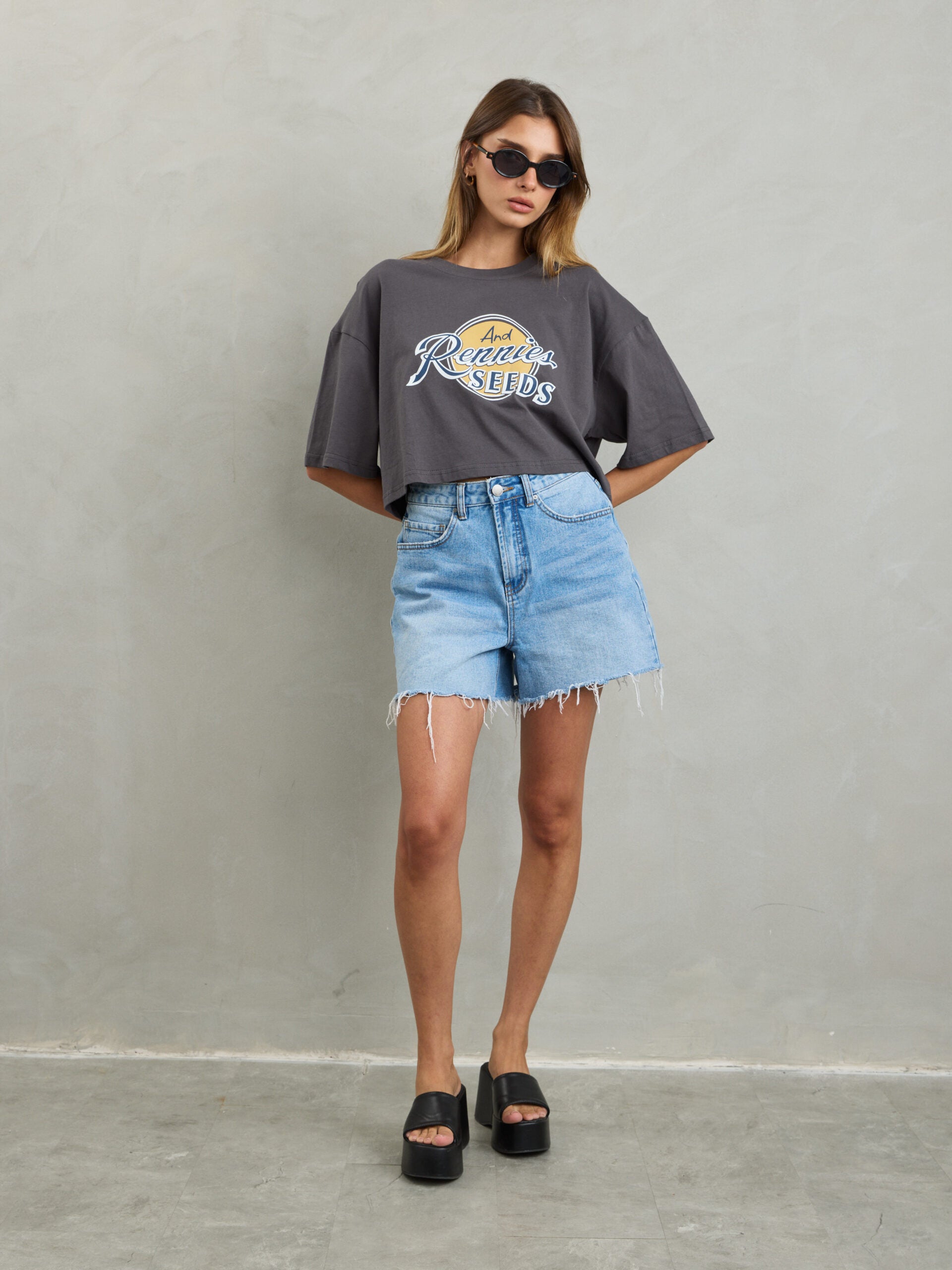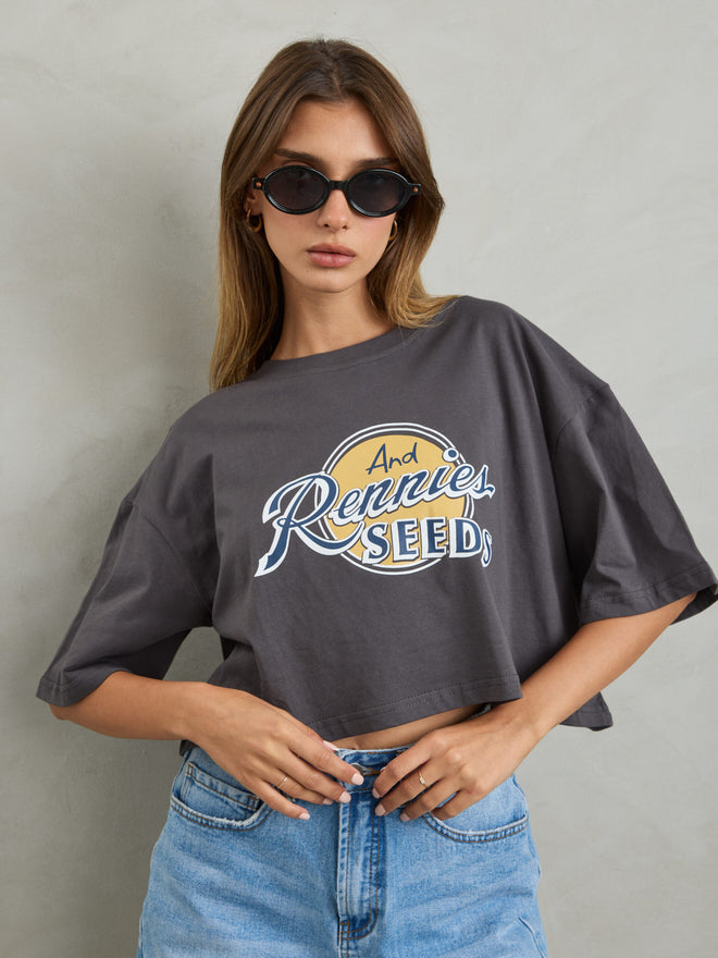 חולצת קרופ לנשים עם הדפס בצבע אפור