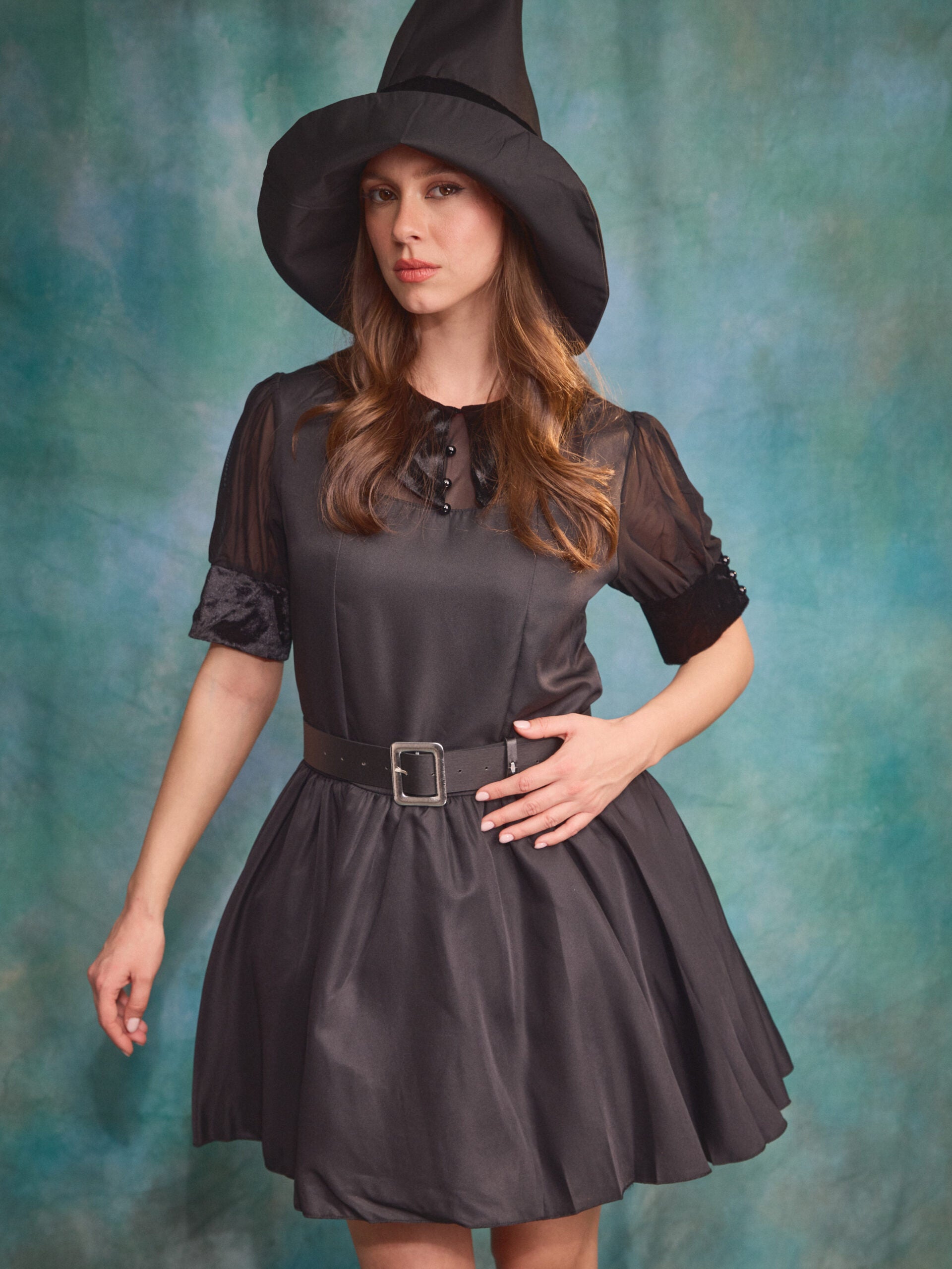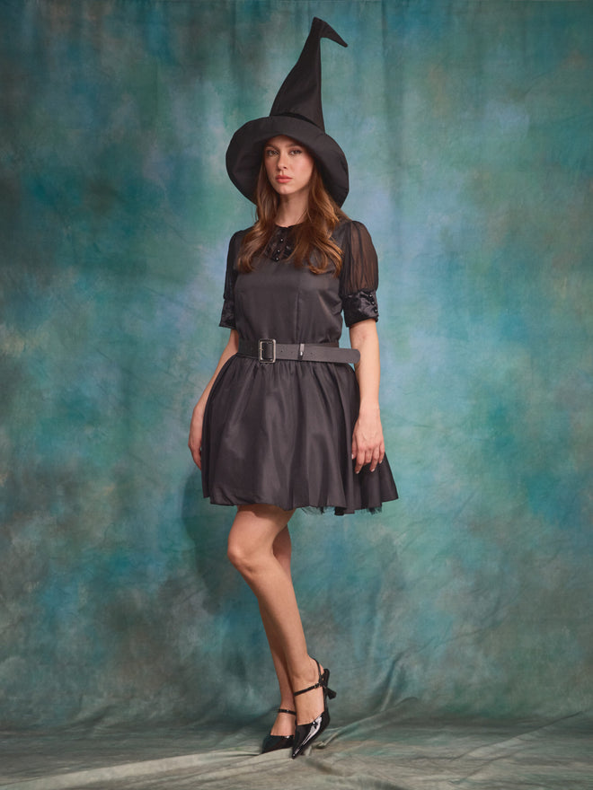 התחפושת כוללת: שמלה, כובע מכשפה, חגורה