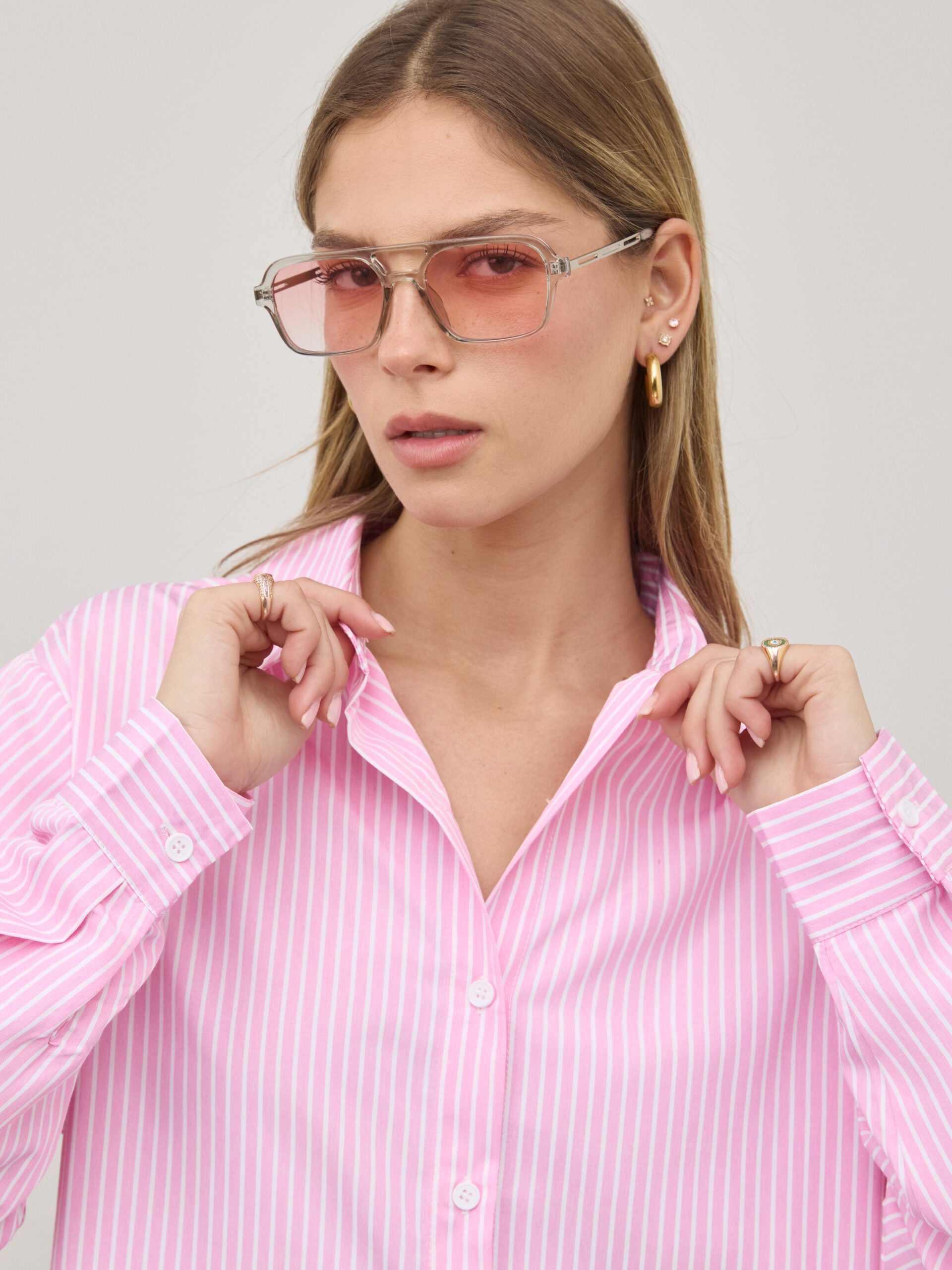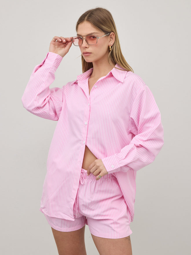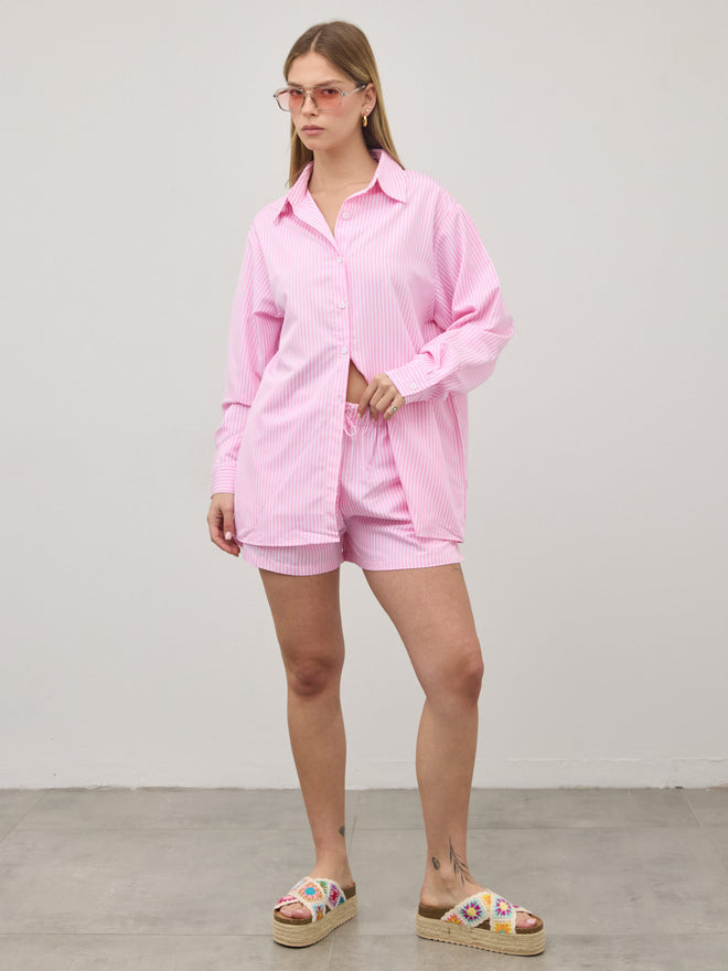 חולצה מכופתרת פסים אלין | ורוד