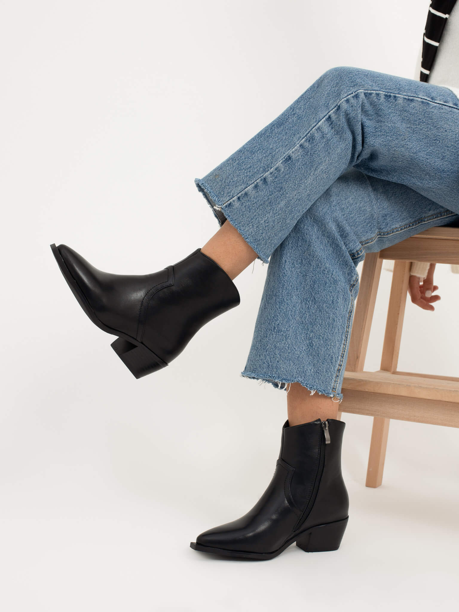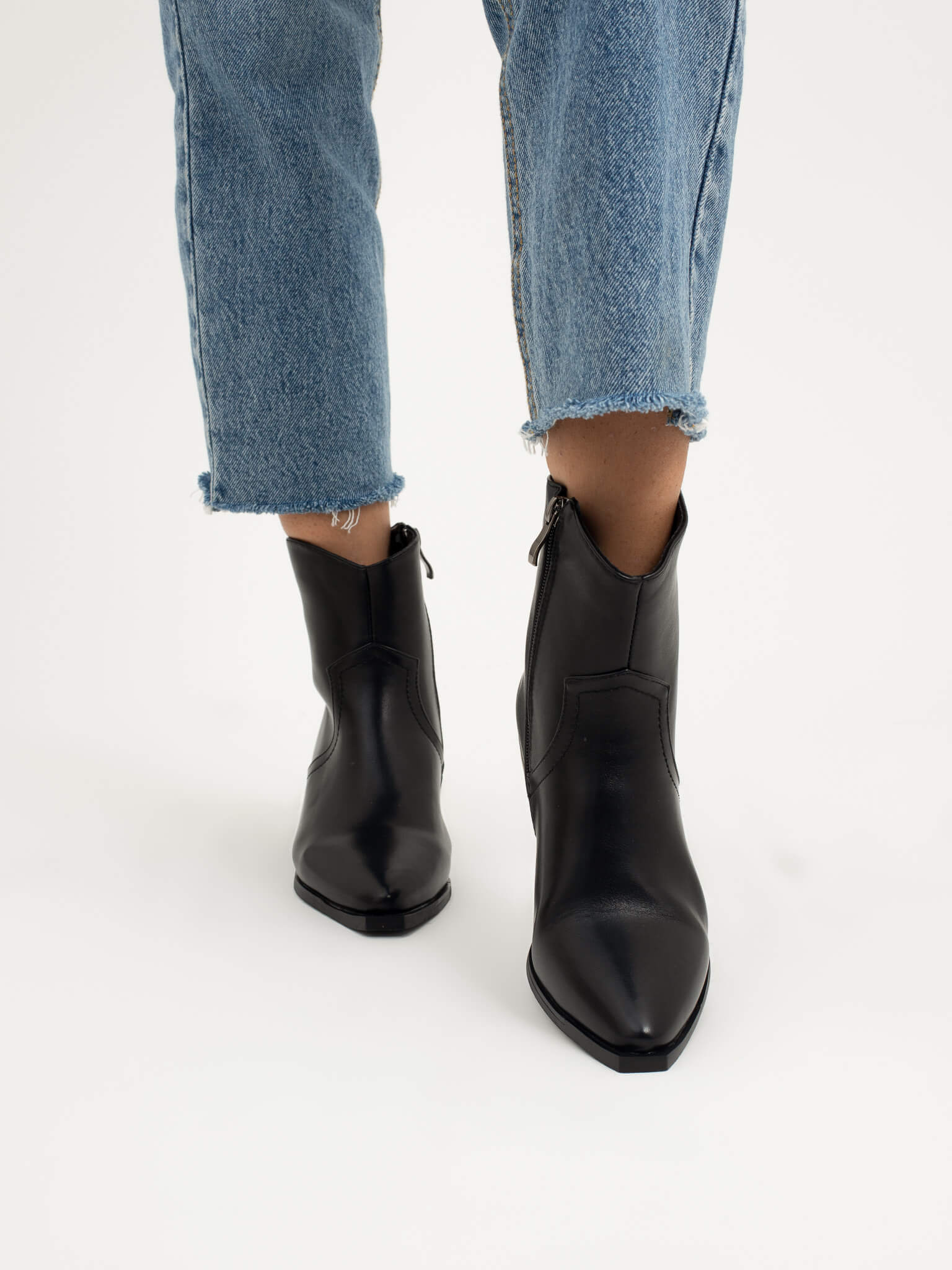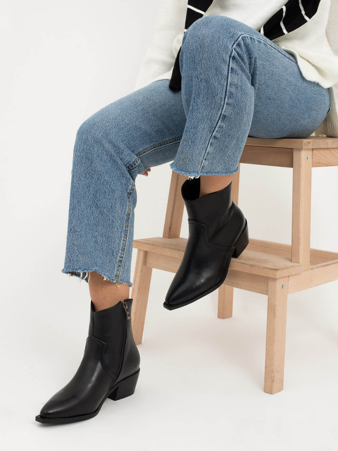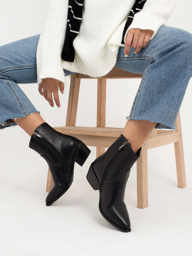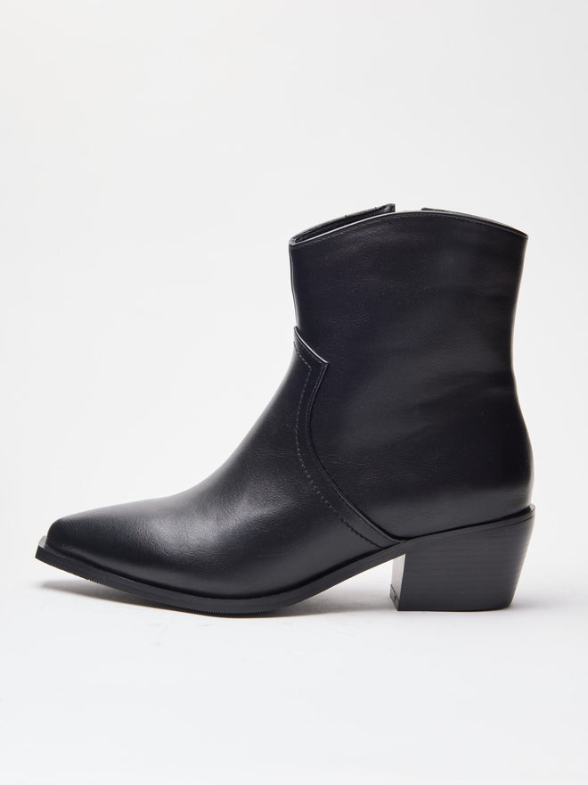 מגפון שחור עם עקב קטן בסגנון קאובוי עם שפיץ