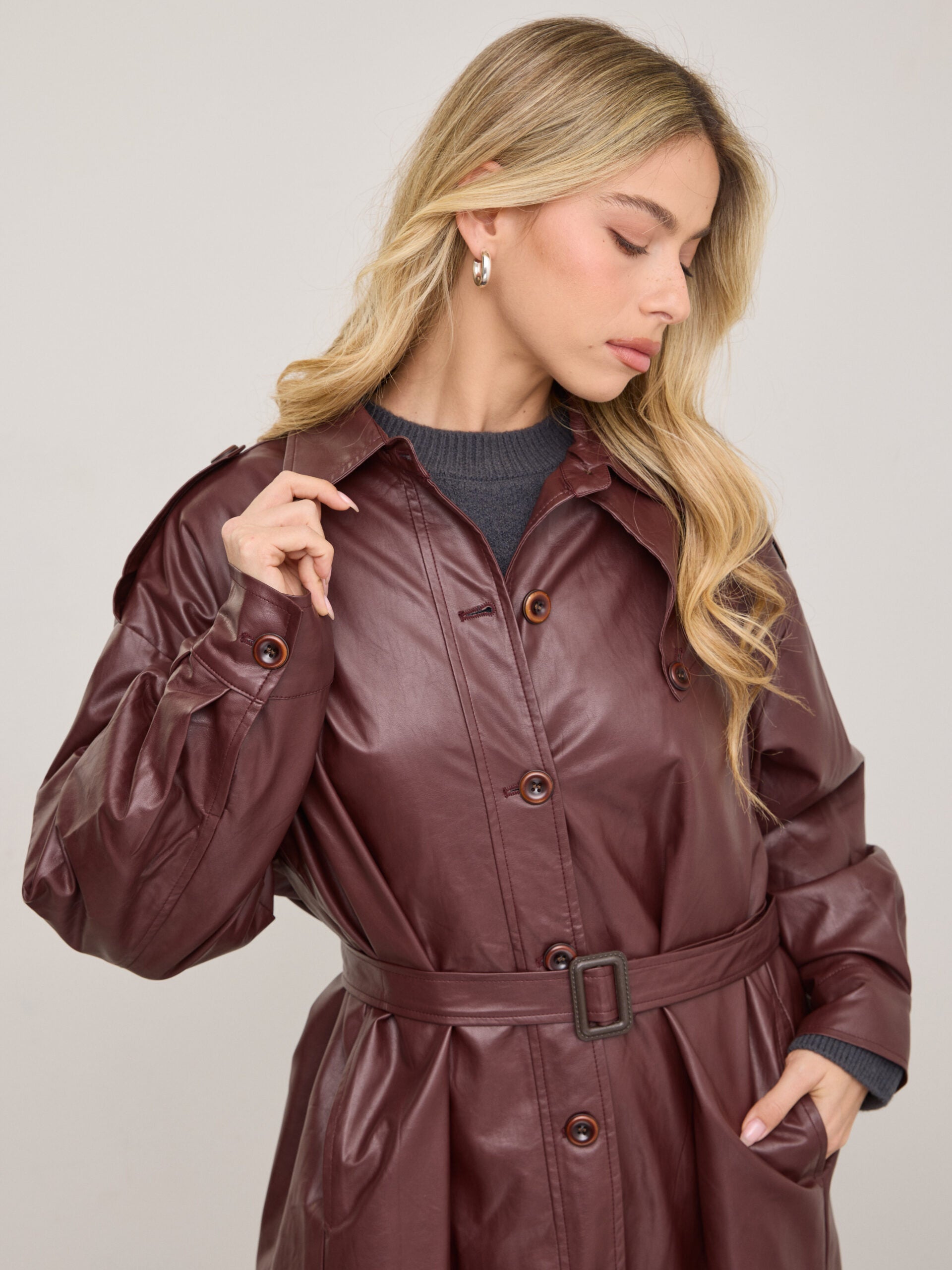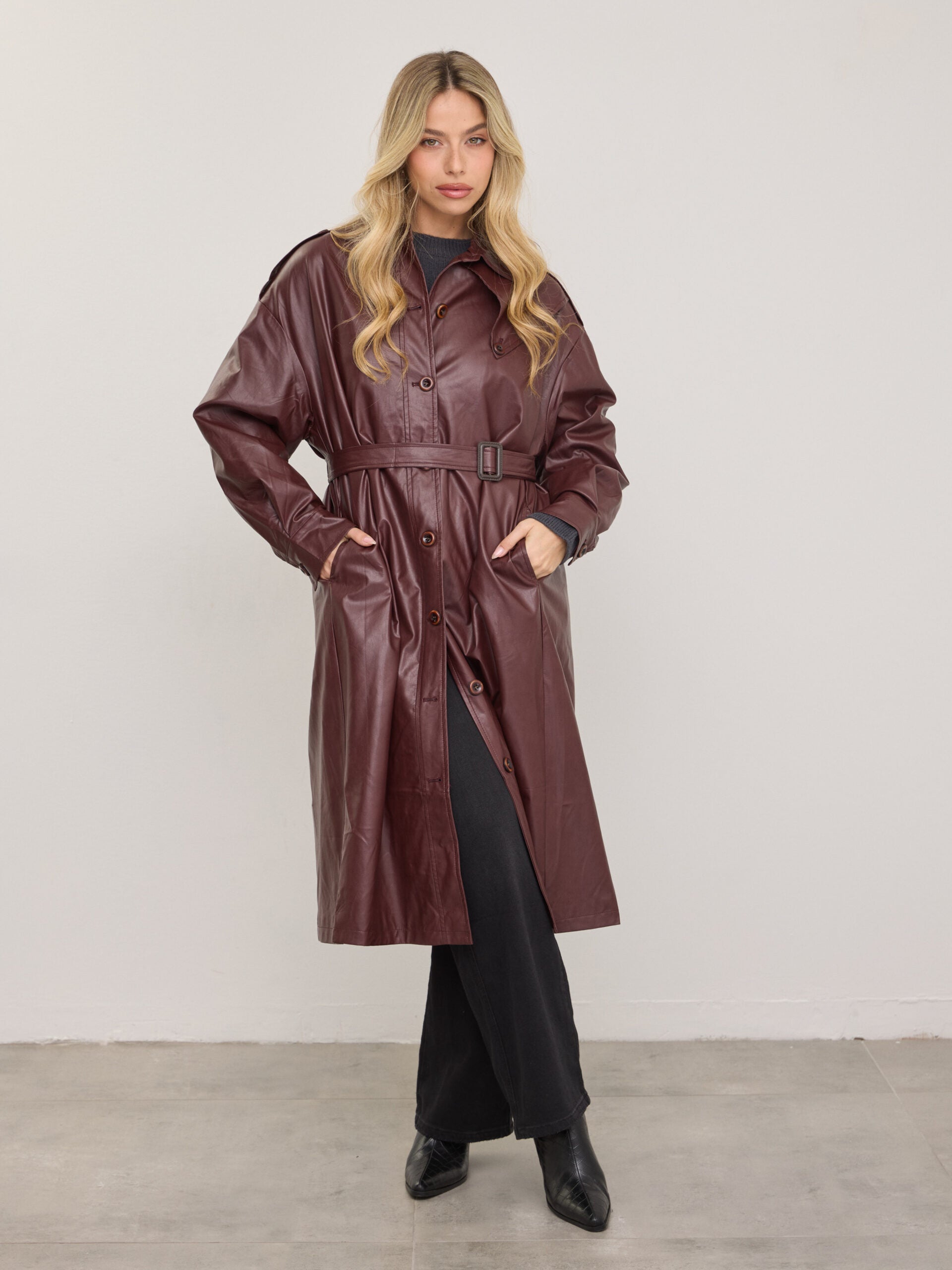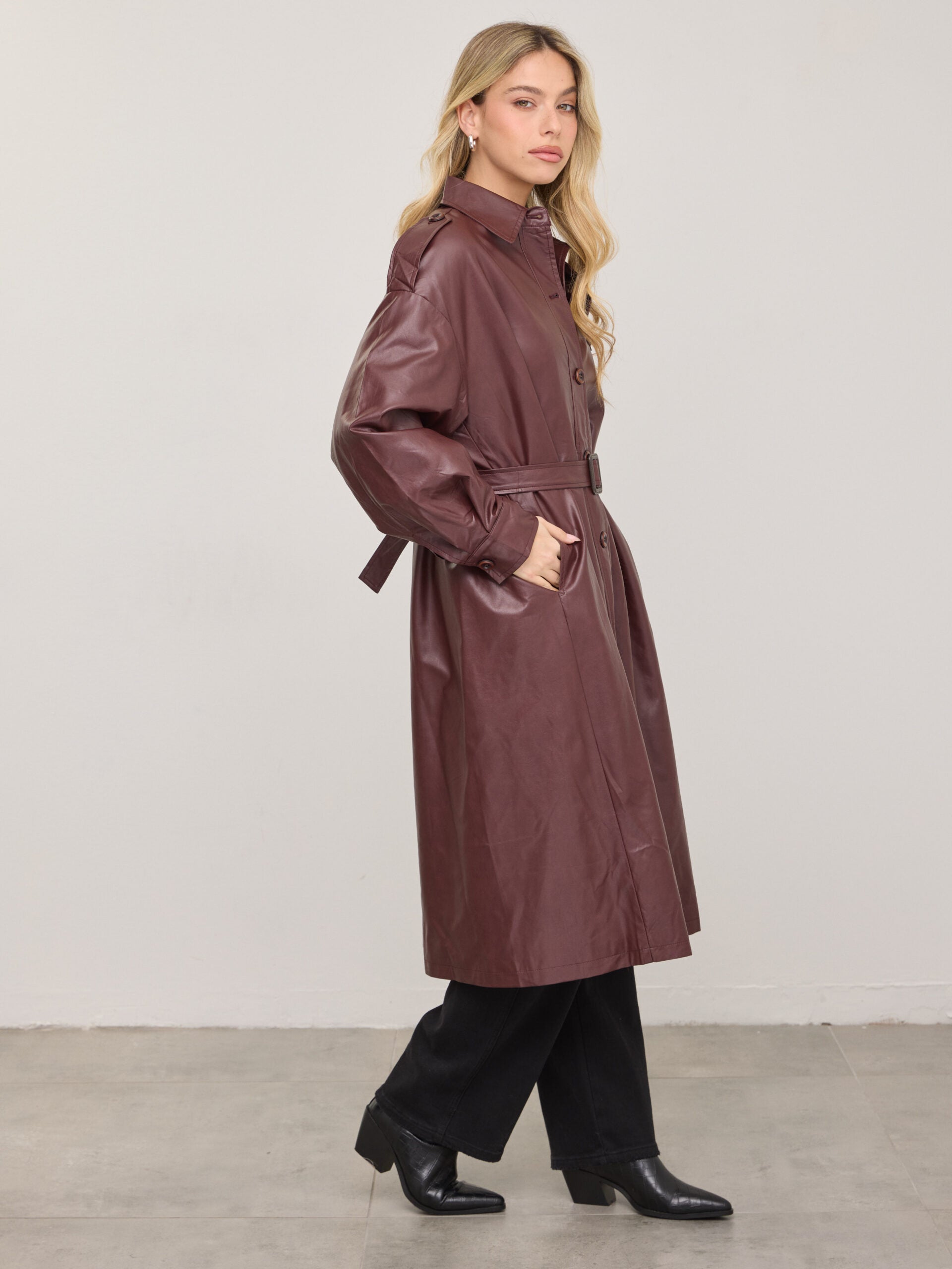 טראנץ' דמוי עור קונלי | בורדו