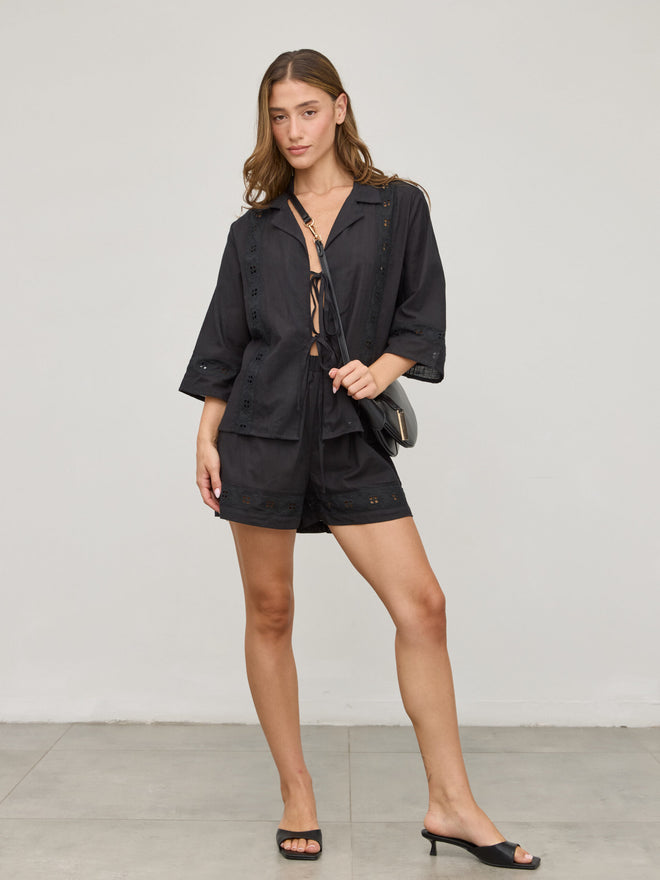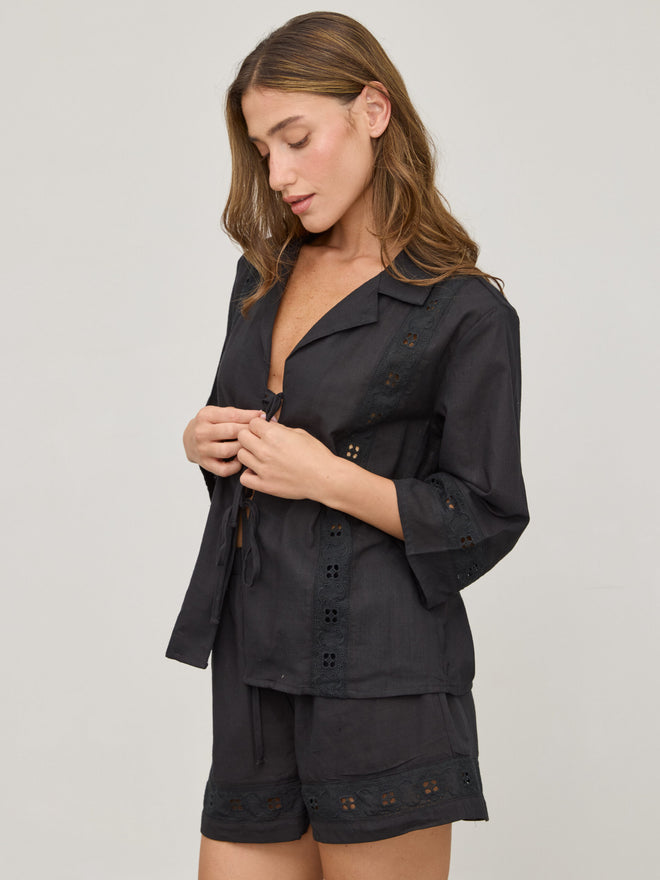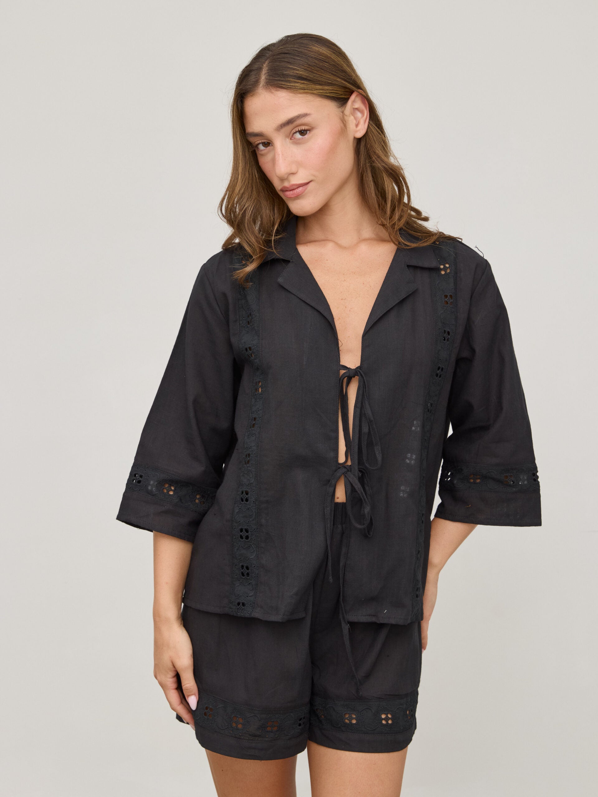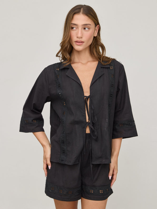 חולצת קשירות תחרה דאני | שחור
