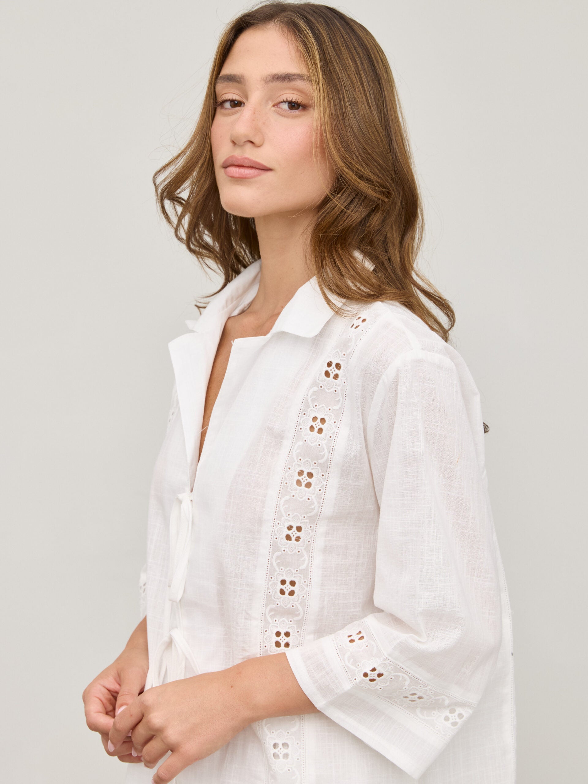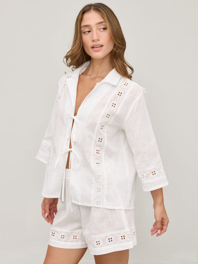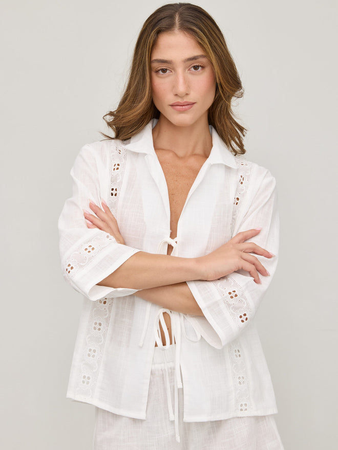 חולצת קשירות תחרה דאני | לבן