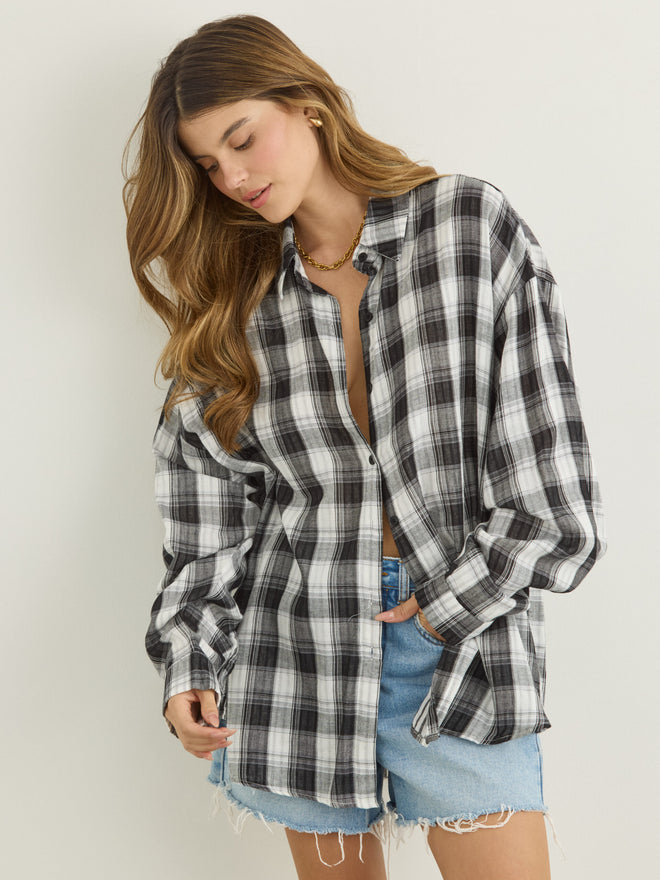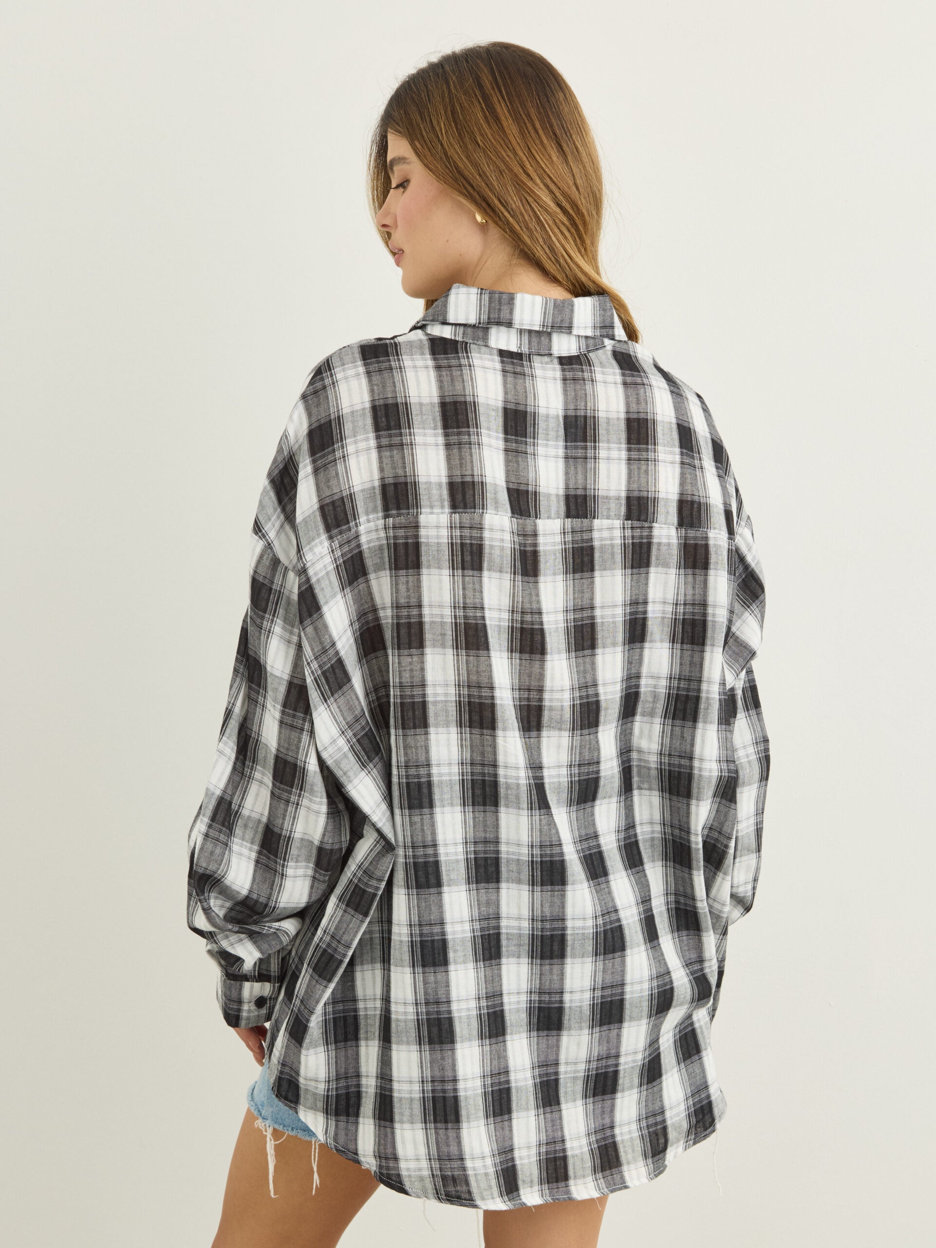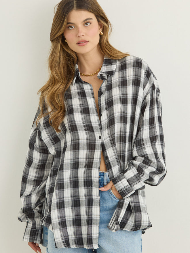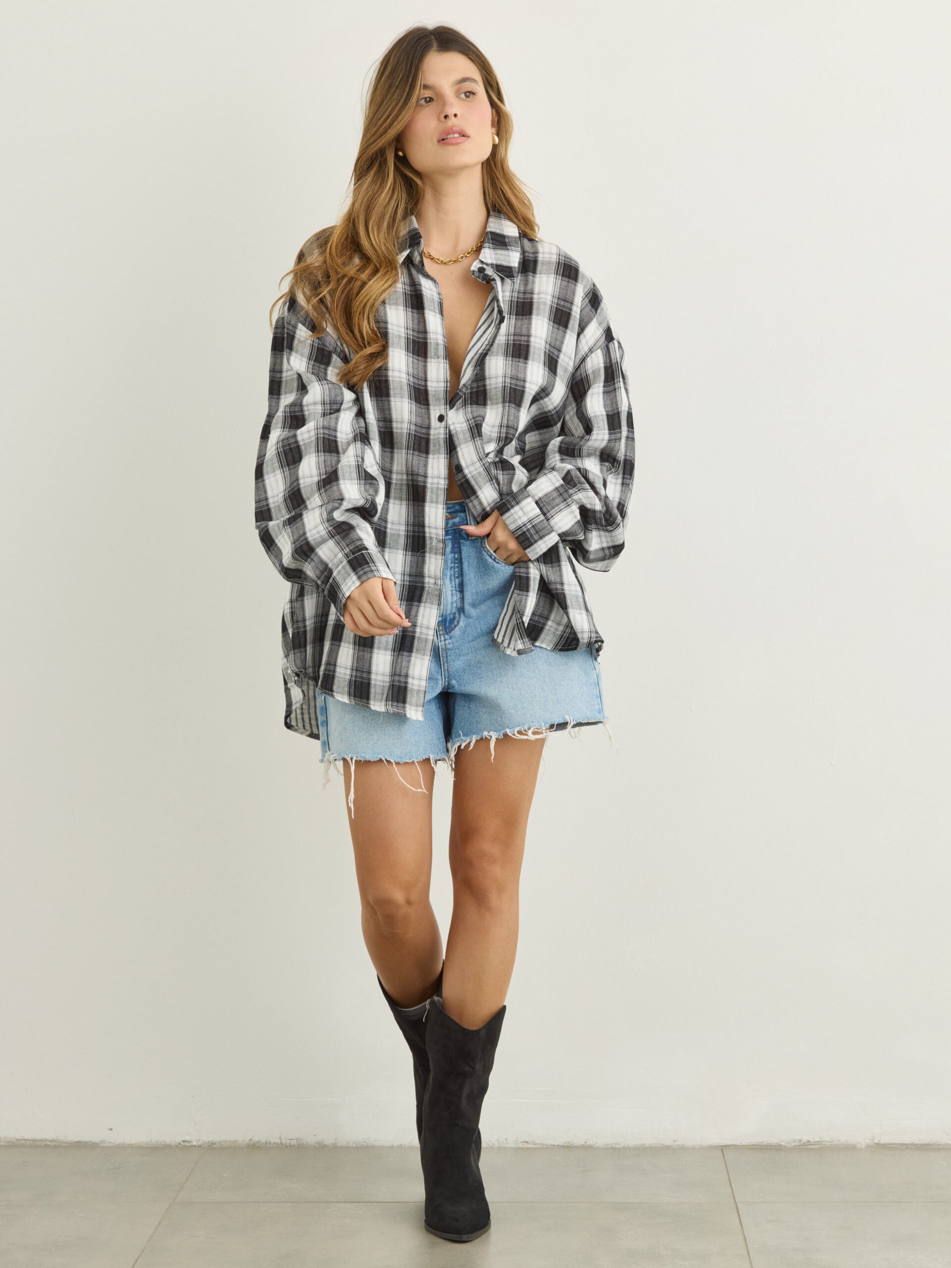 חולצה מכופתרת משבצות דרי | שחור