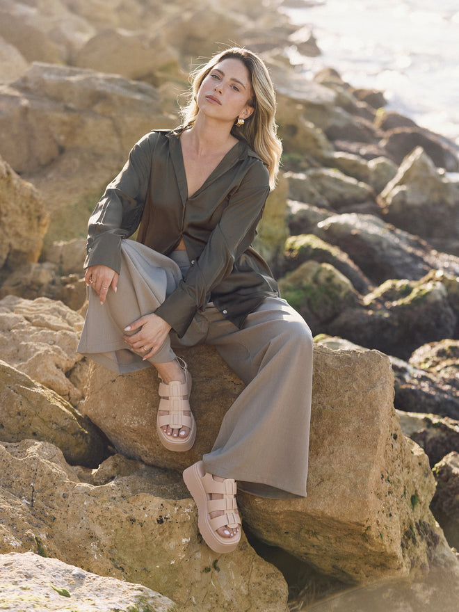 חולצה מכופתרת סאטן דונה | חאקי