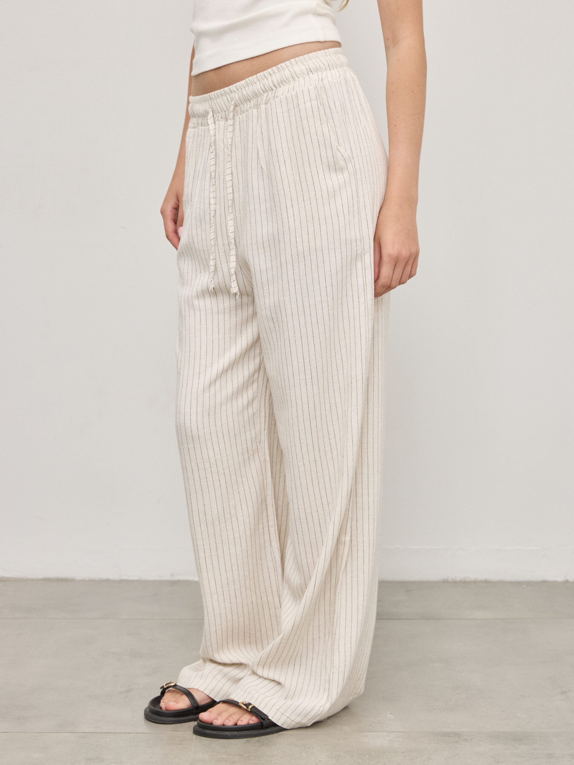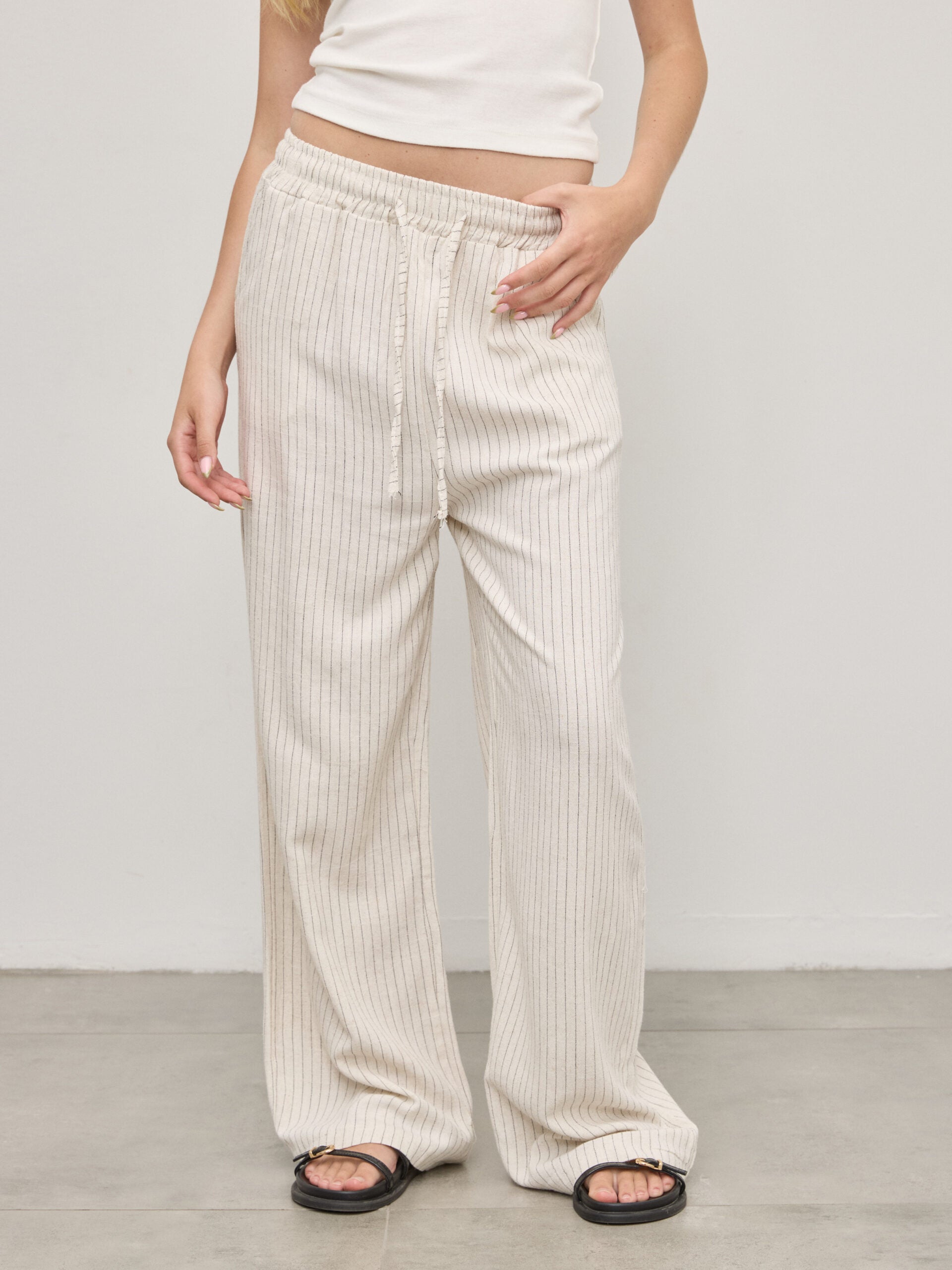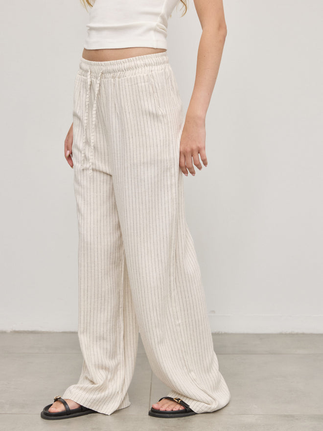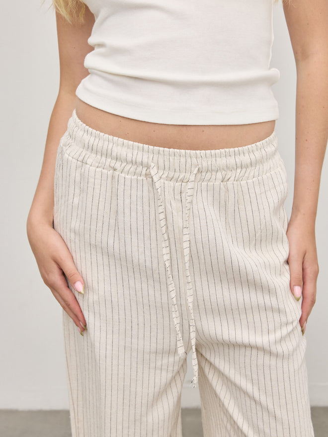 מכנסי פשתן פסים אמילי | בז'