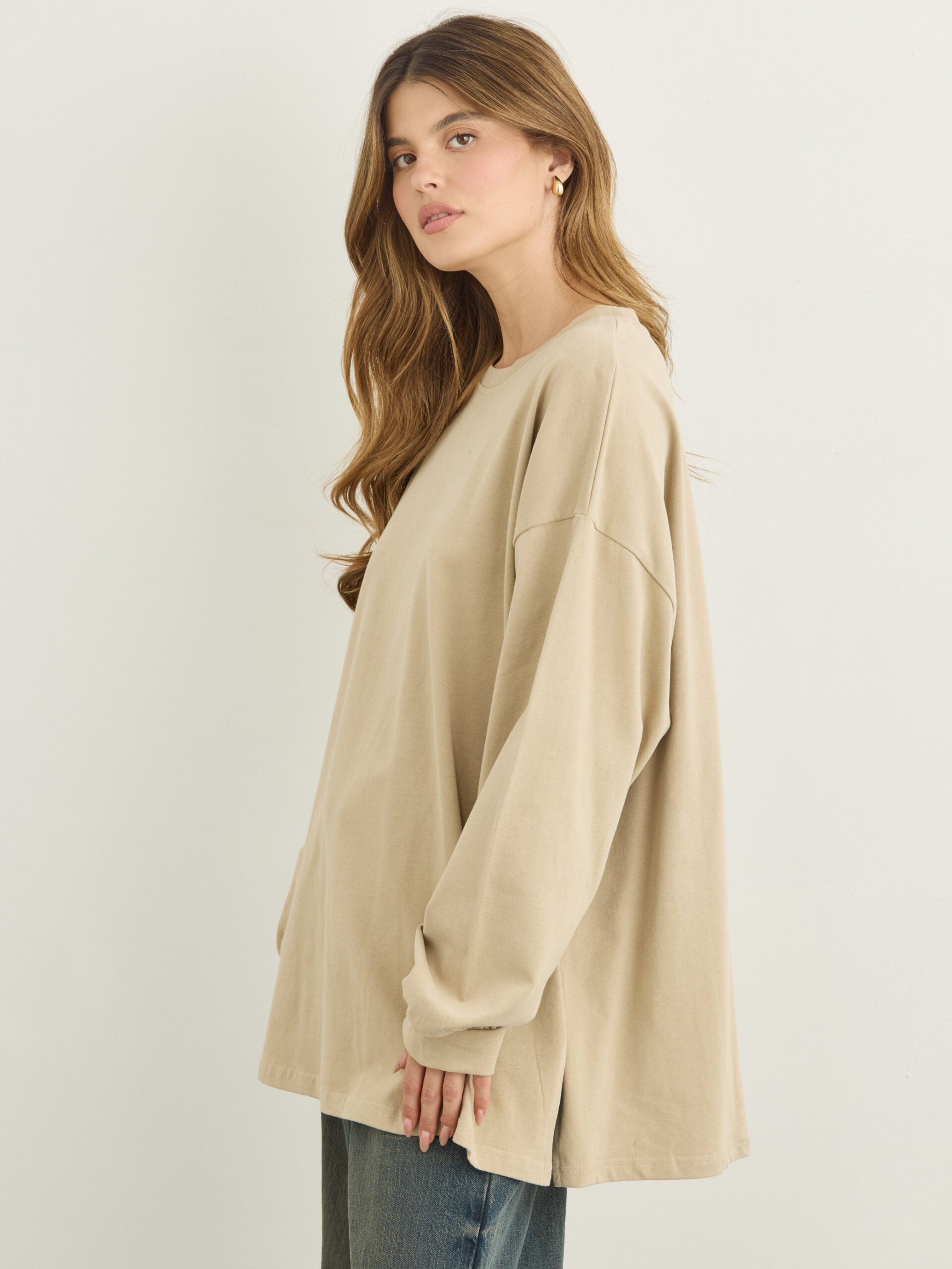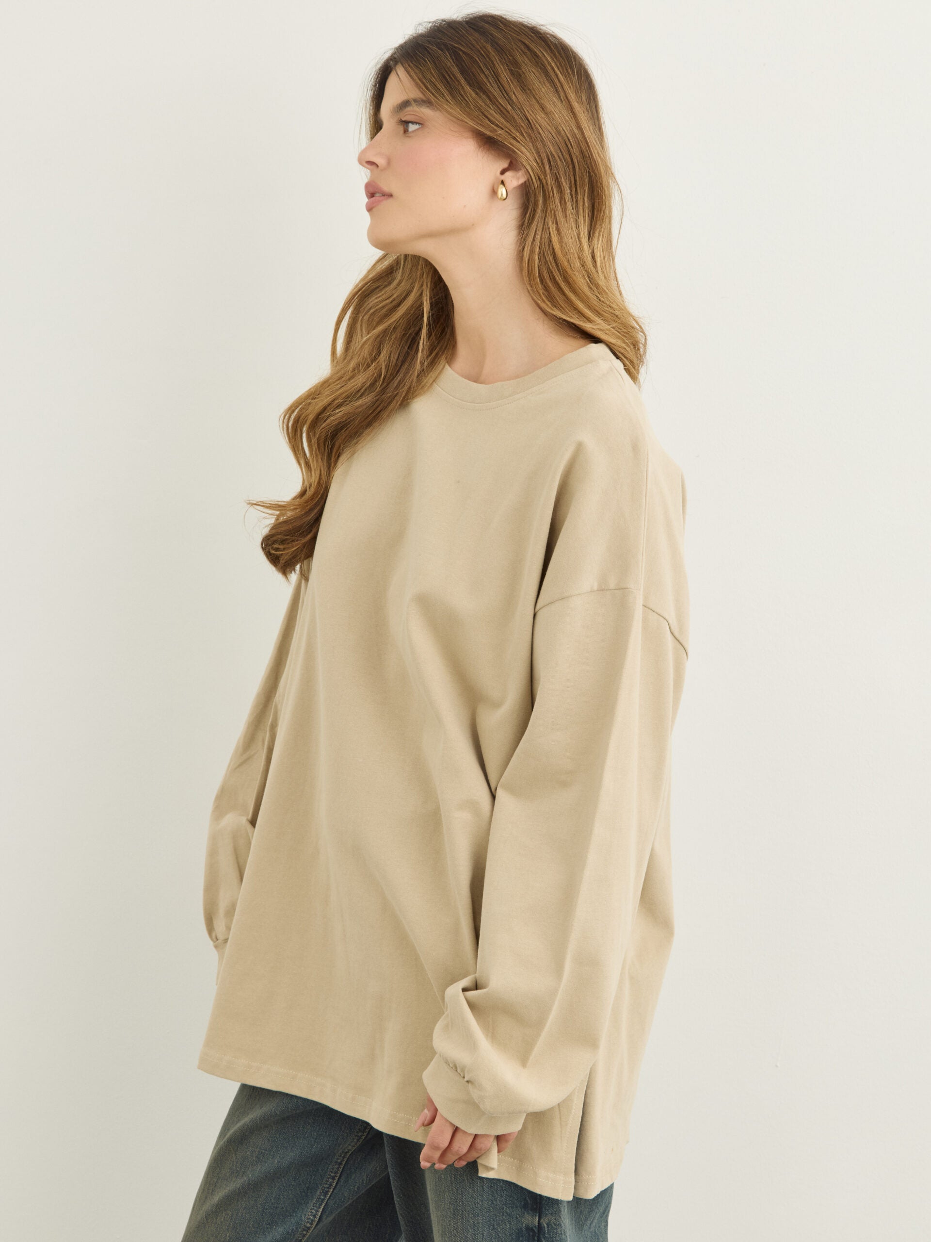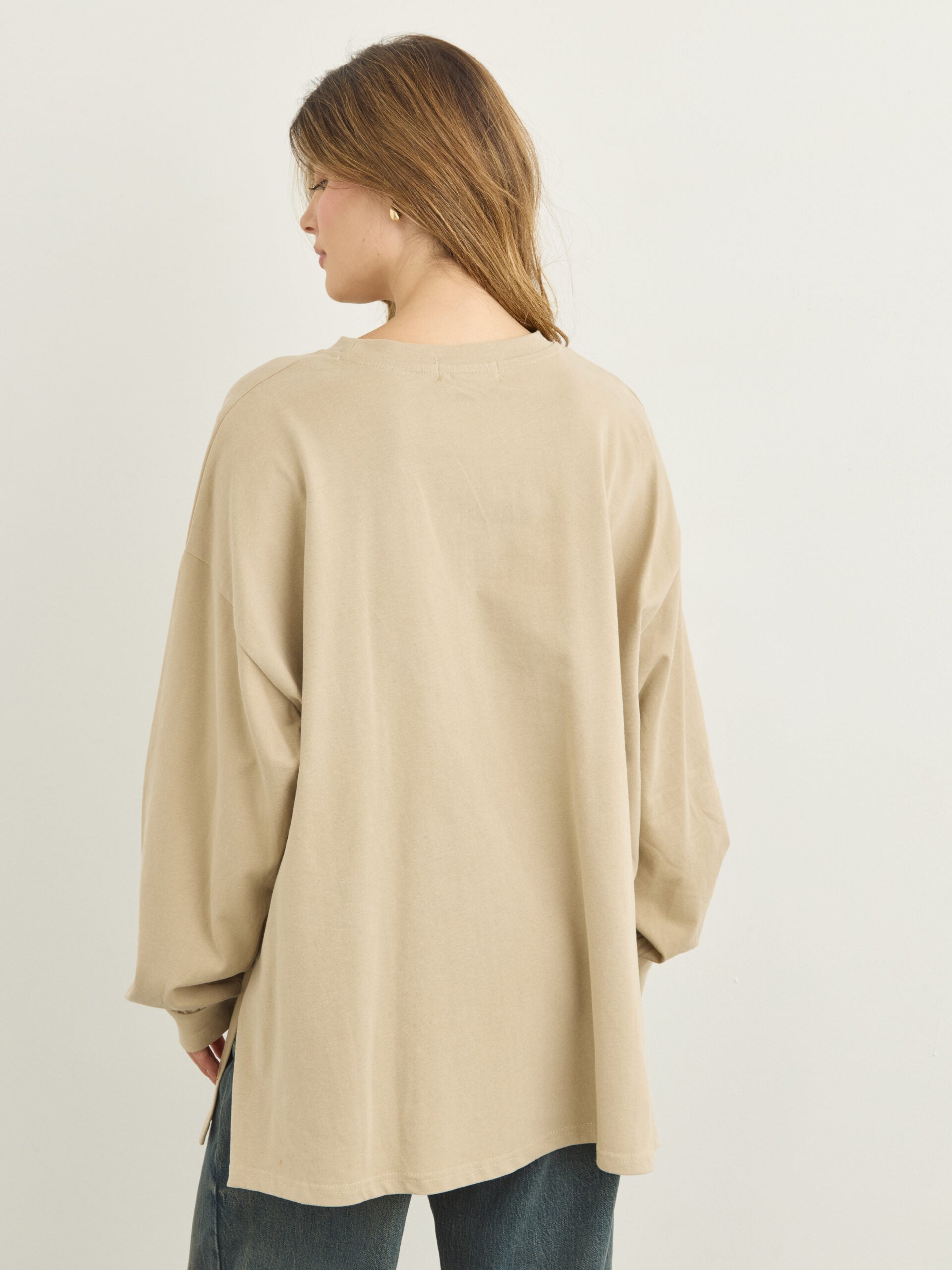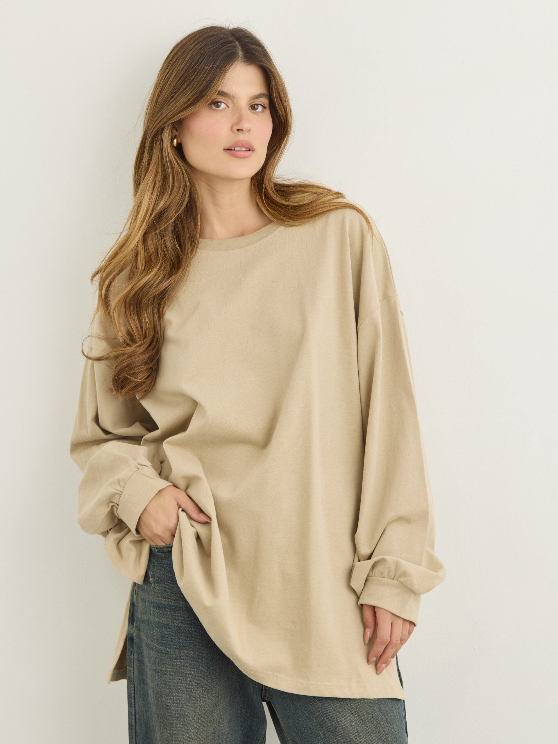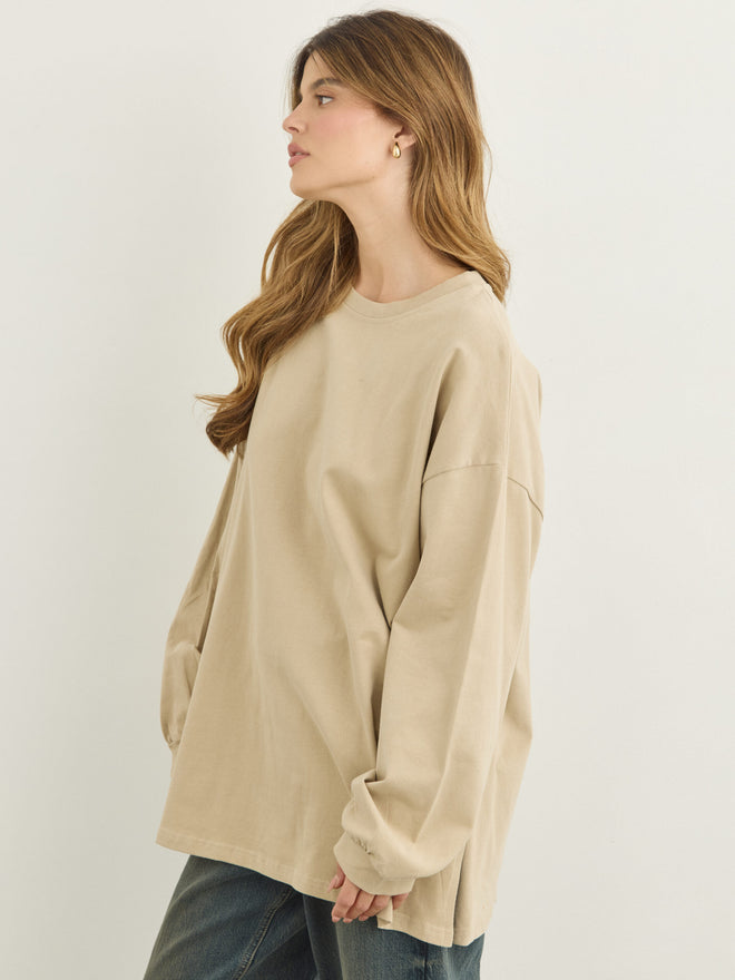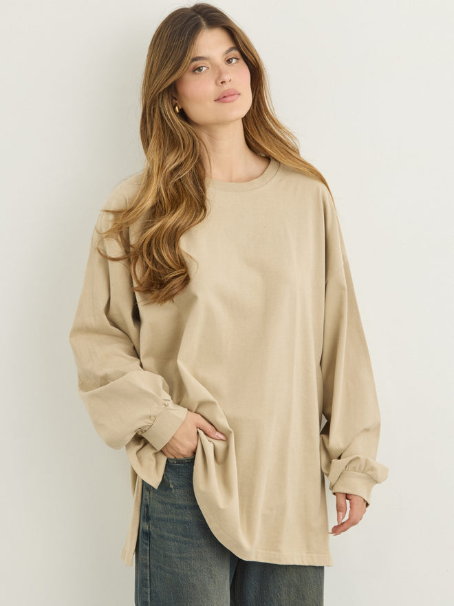 טישירט שרוול ארוך אוברסייז אריקה | בז'