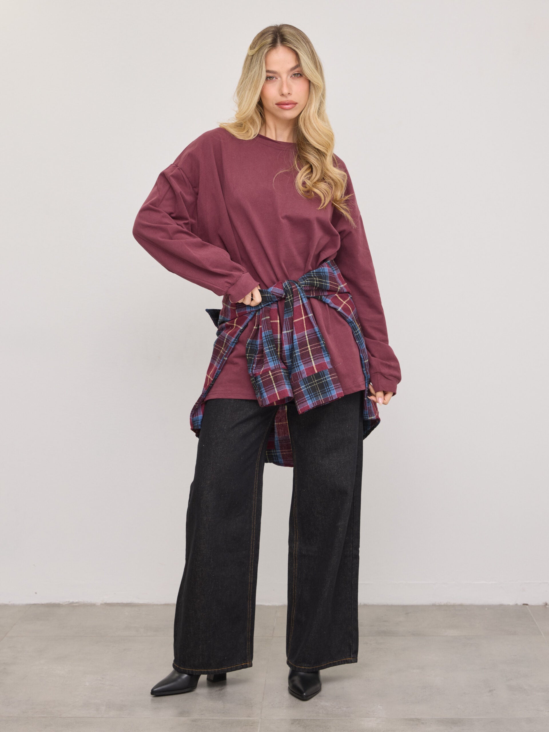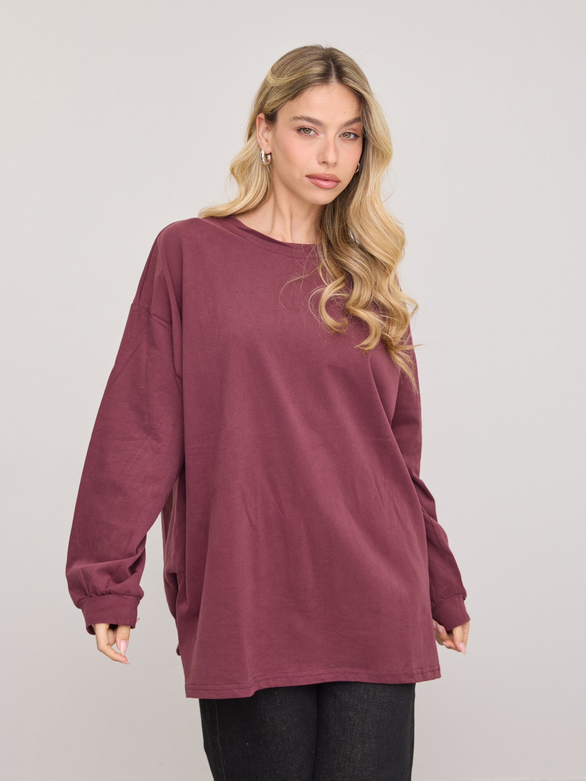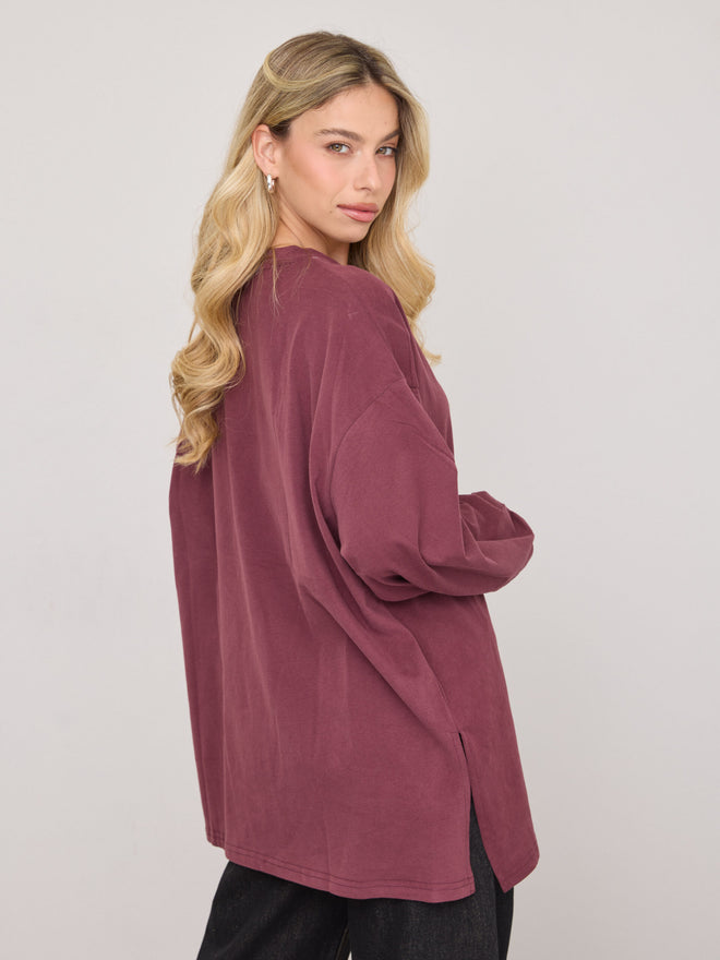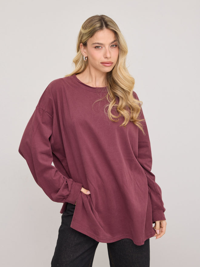 טישירט שרוול ארוך אוברסייז אריקה | בורדו