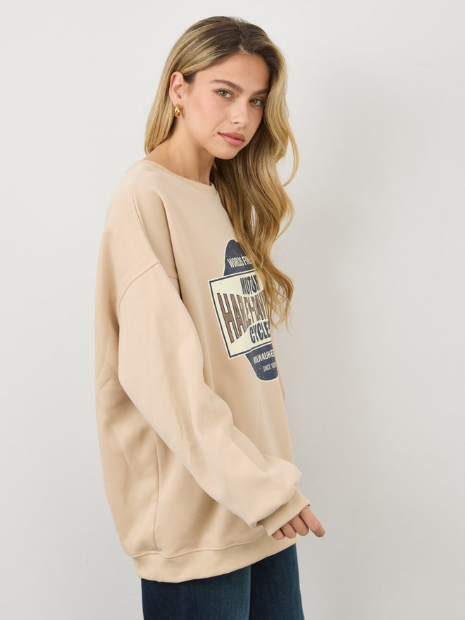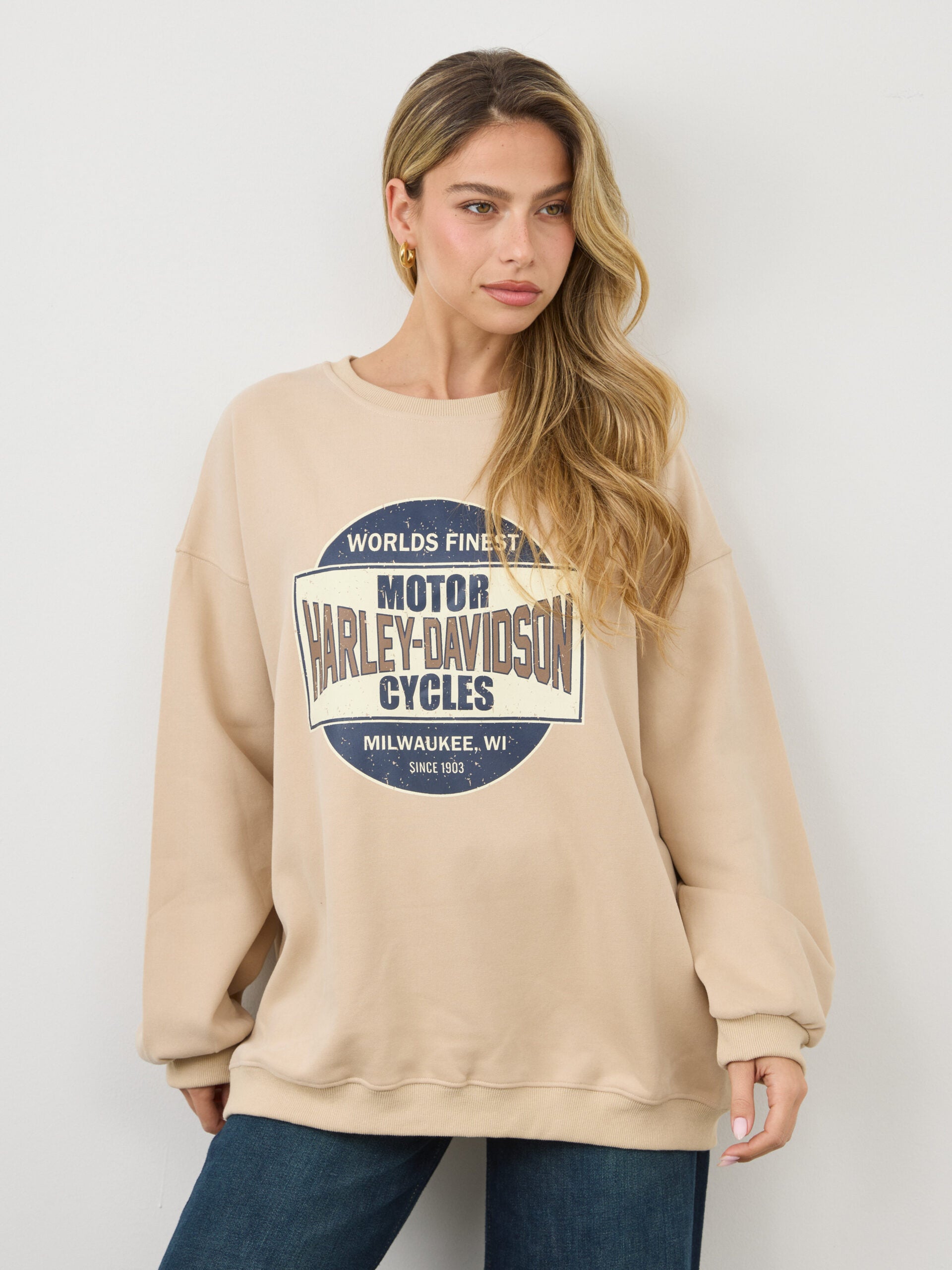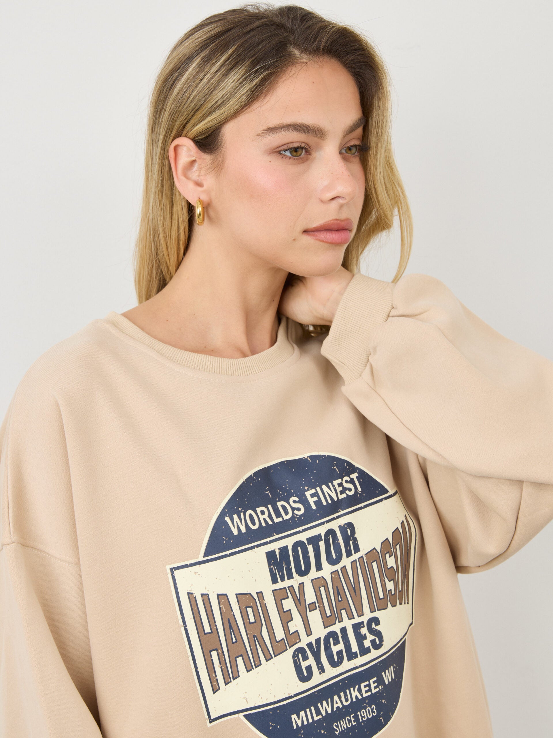 סווטשירט אוברסייז בדפס HARLEY | בז'