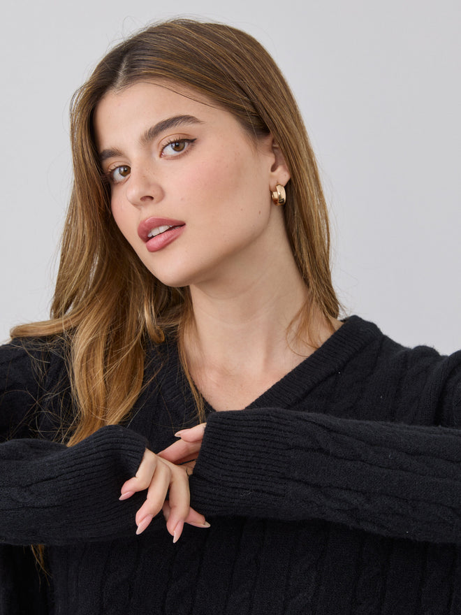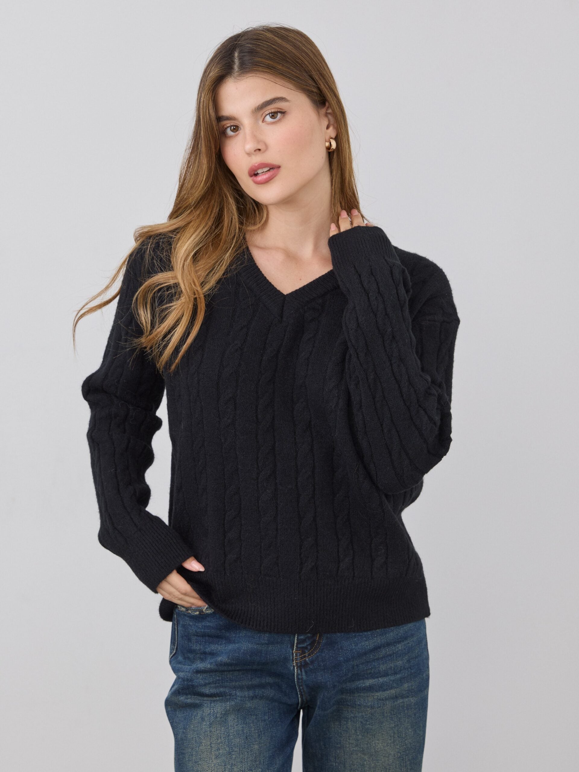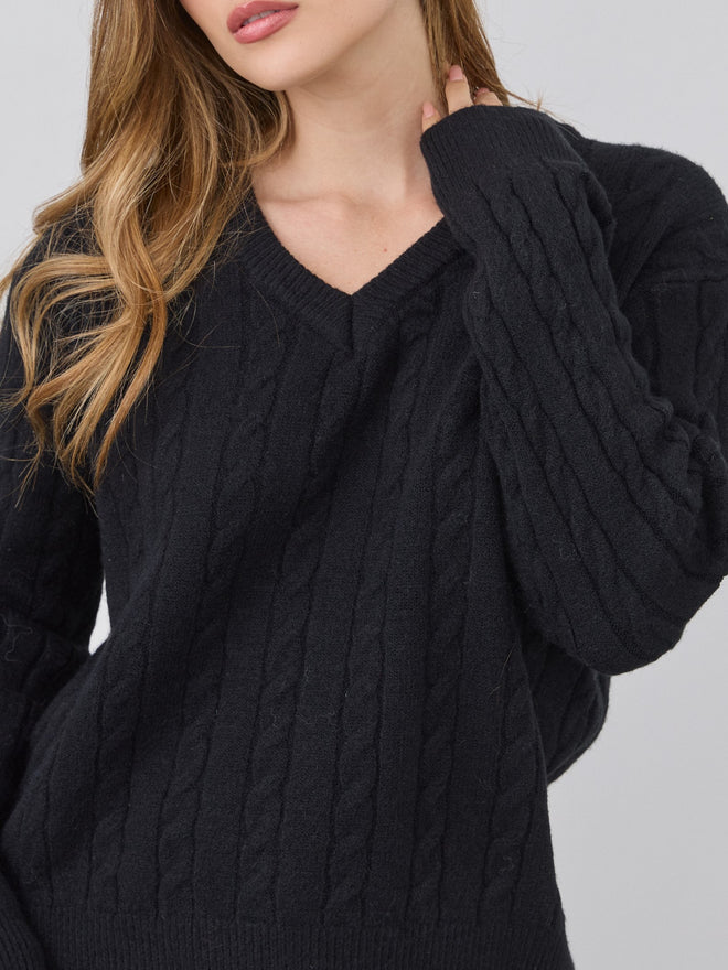 סוודר צמות אינז | שחור