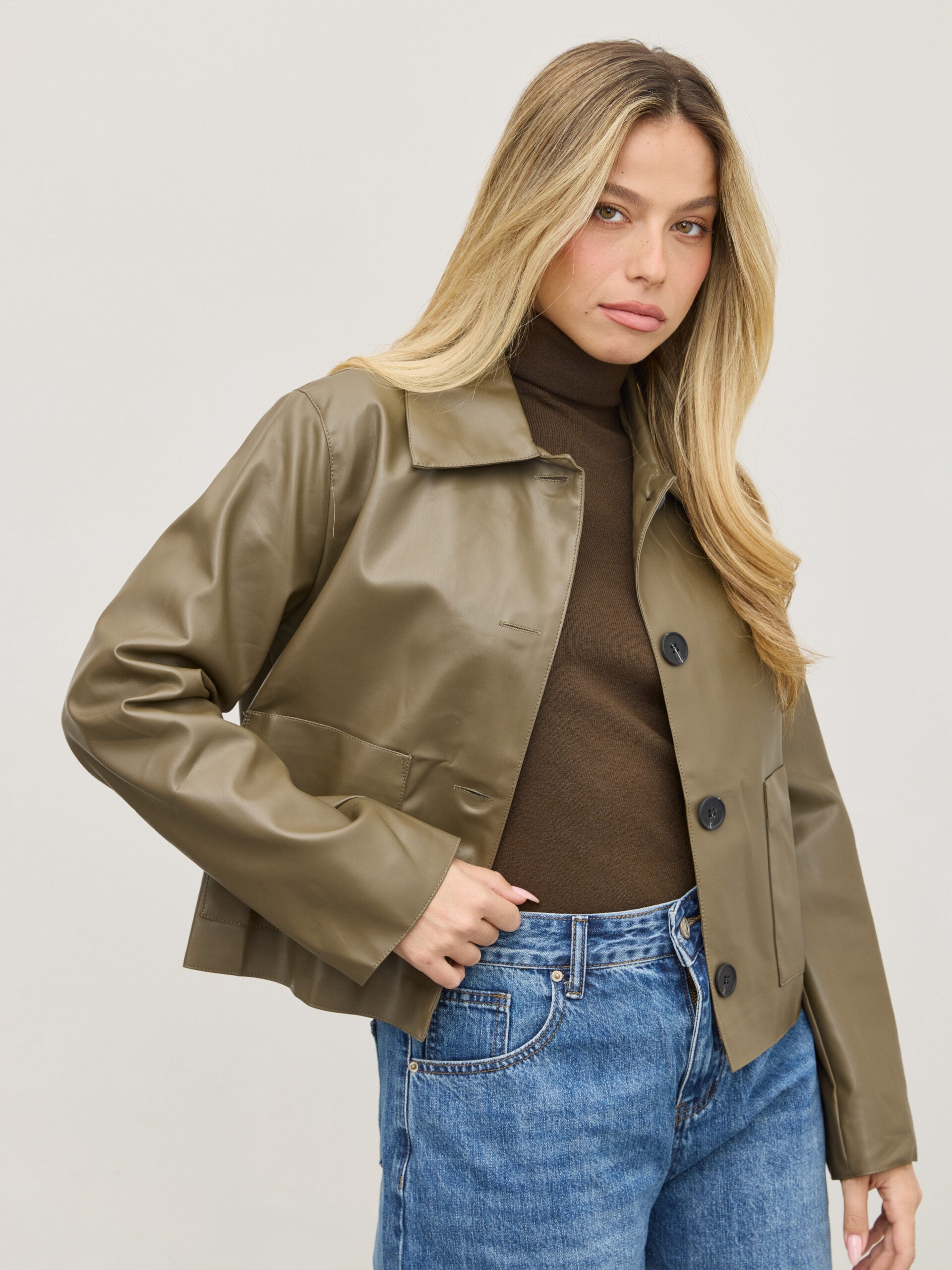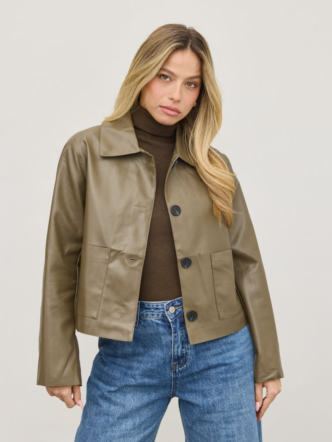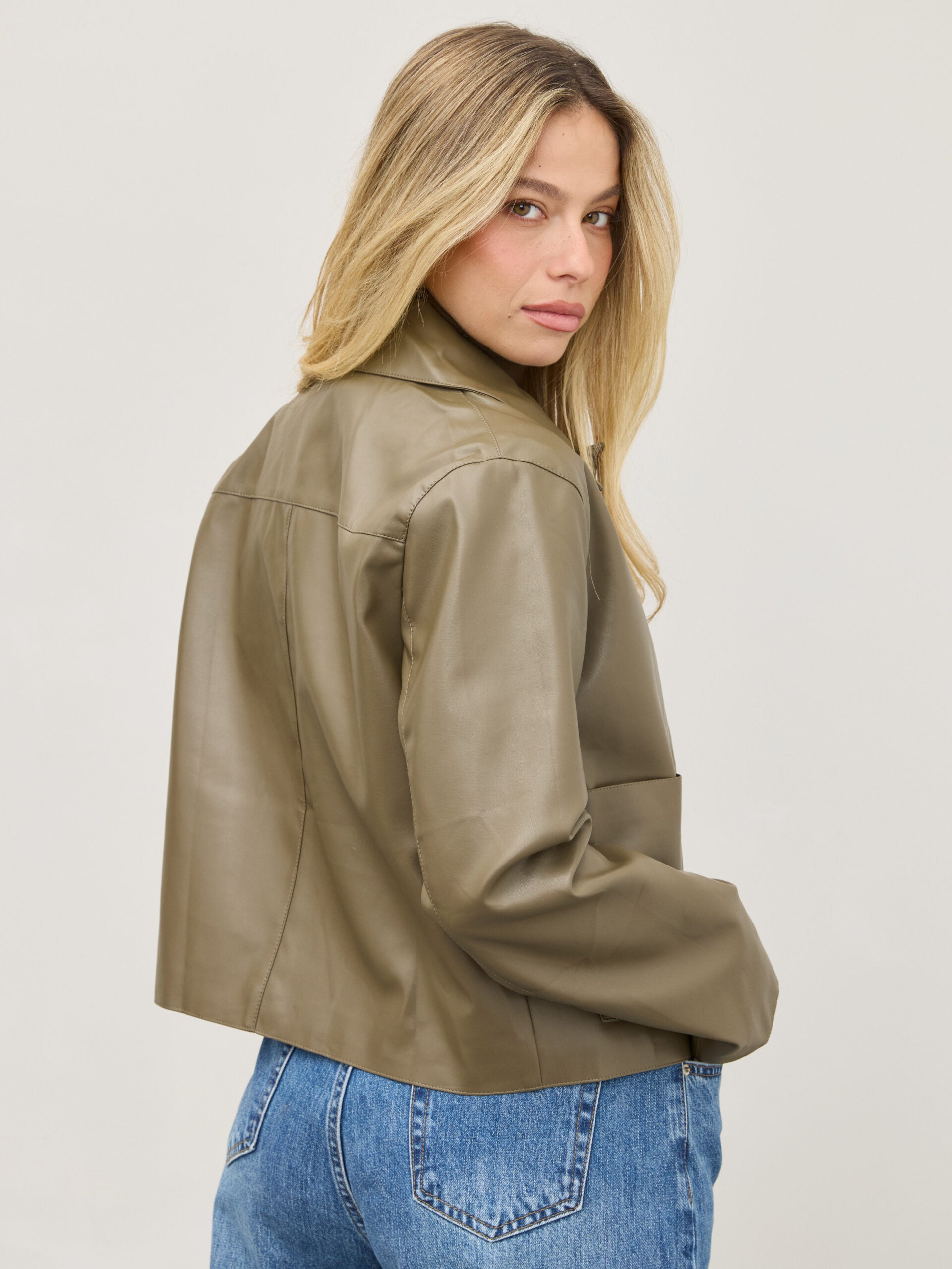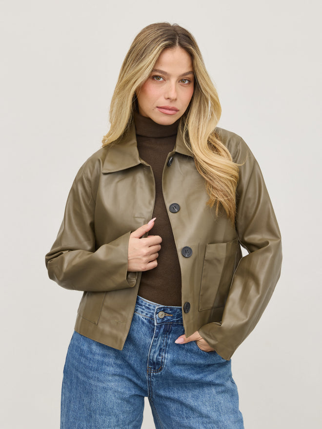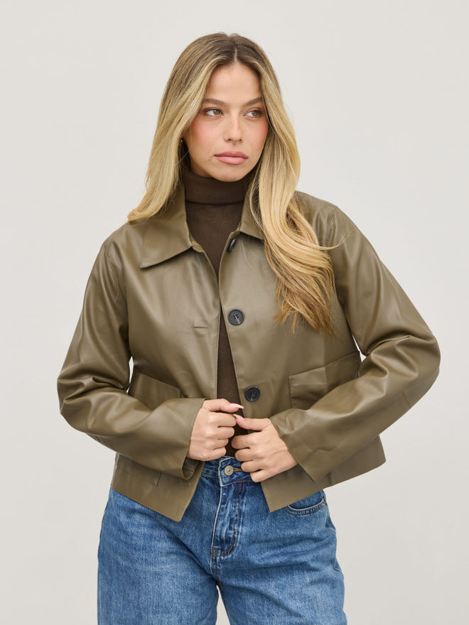 ג'קט דמוי עור ג'וני | ירוק