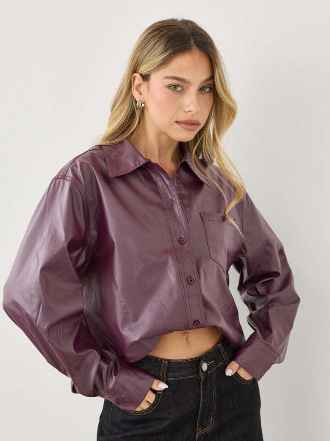 חולצה מכופתרת דמוי עור קנדל | בורדו