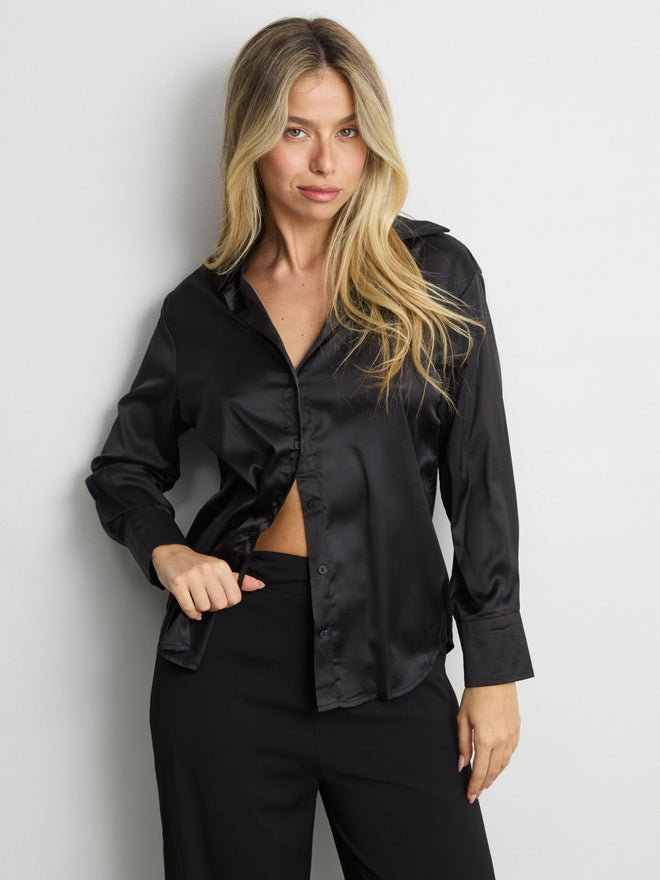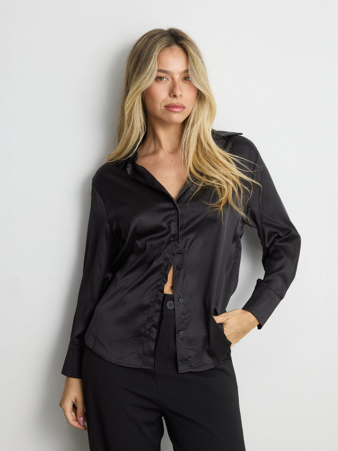 חולצה מכופתרת סאטן לוסיל | שחור
