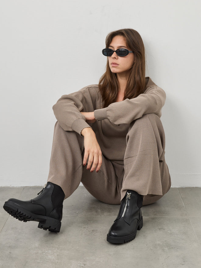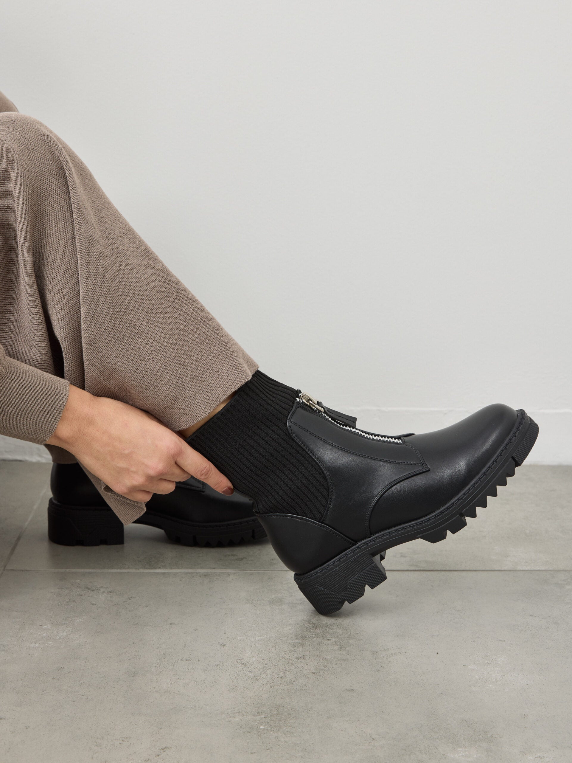 מגפוני סוליית טרקטור בצבע שחור סיומת מעוגלת