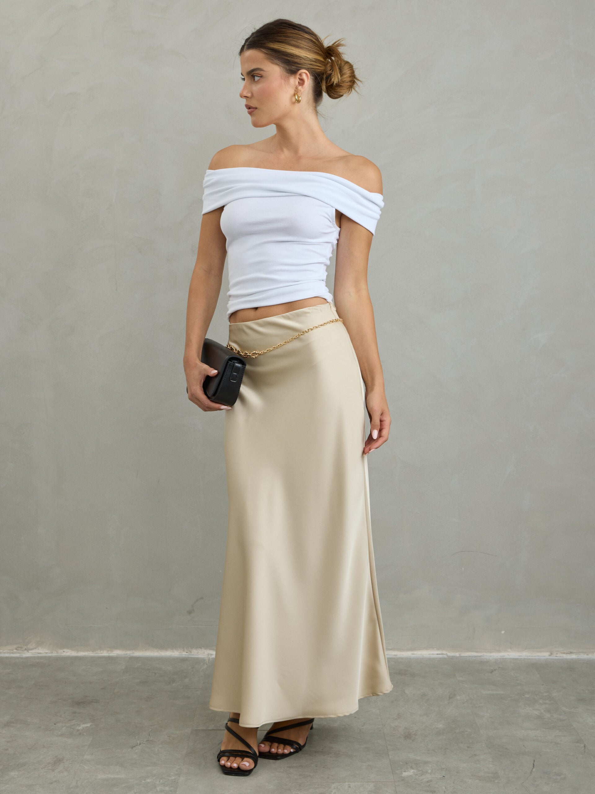 חצאית סאטן מיליה | בז'