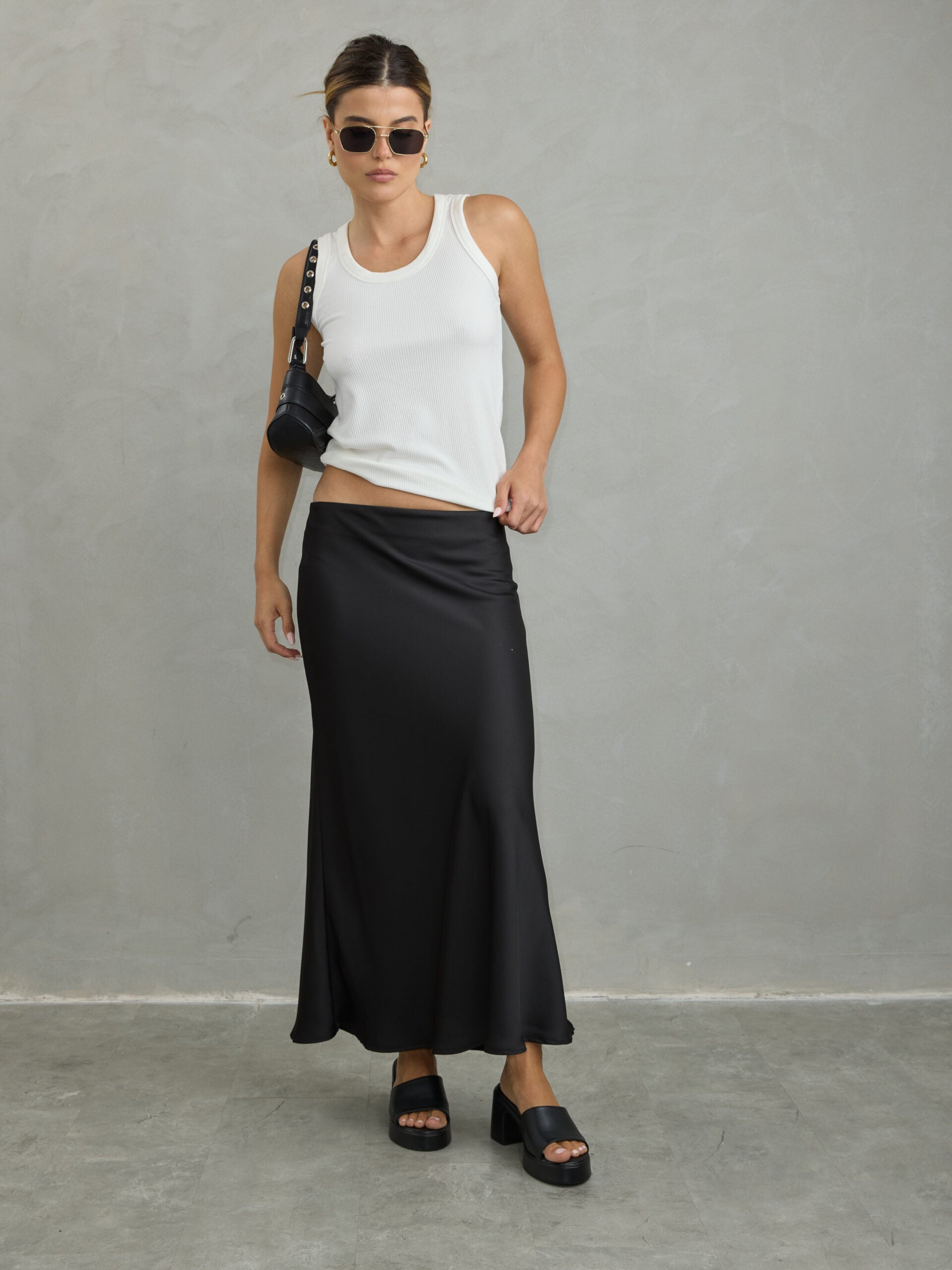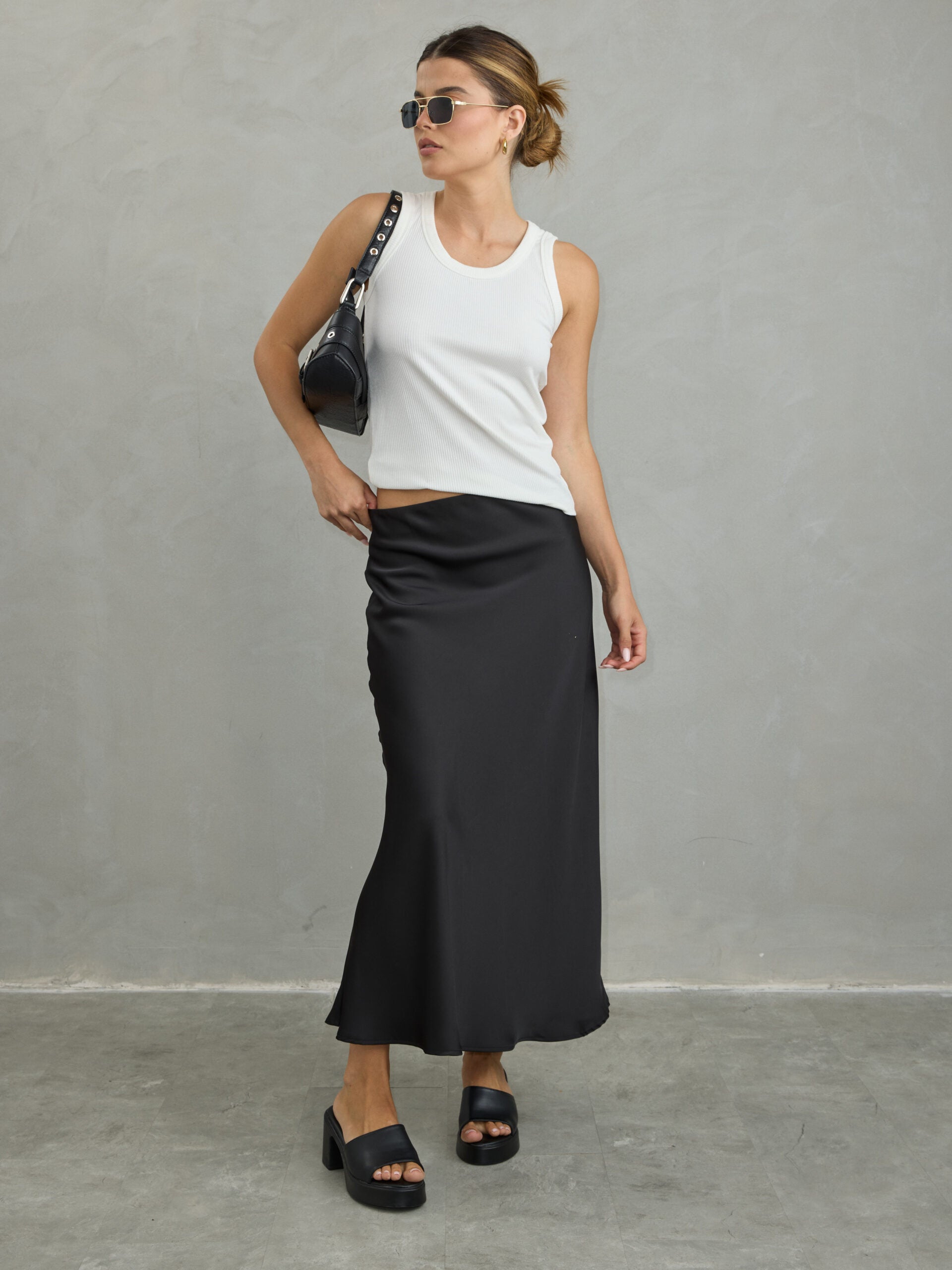 חצאית סאטן מיליה | שחור