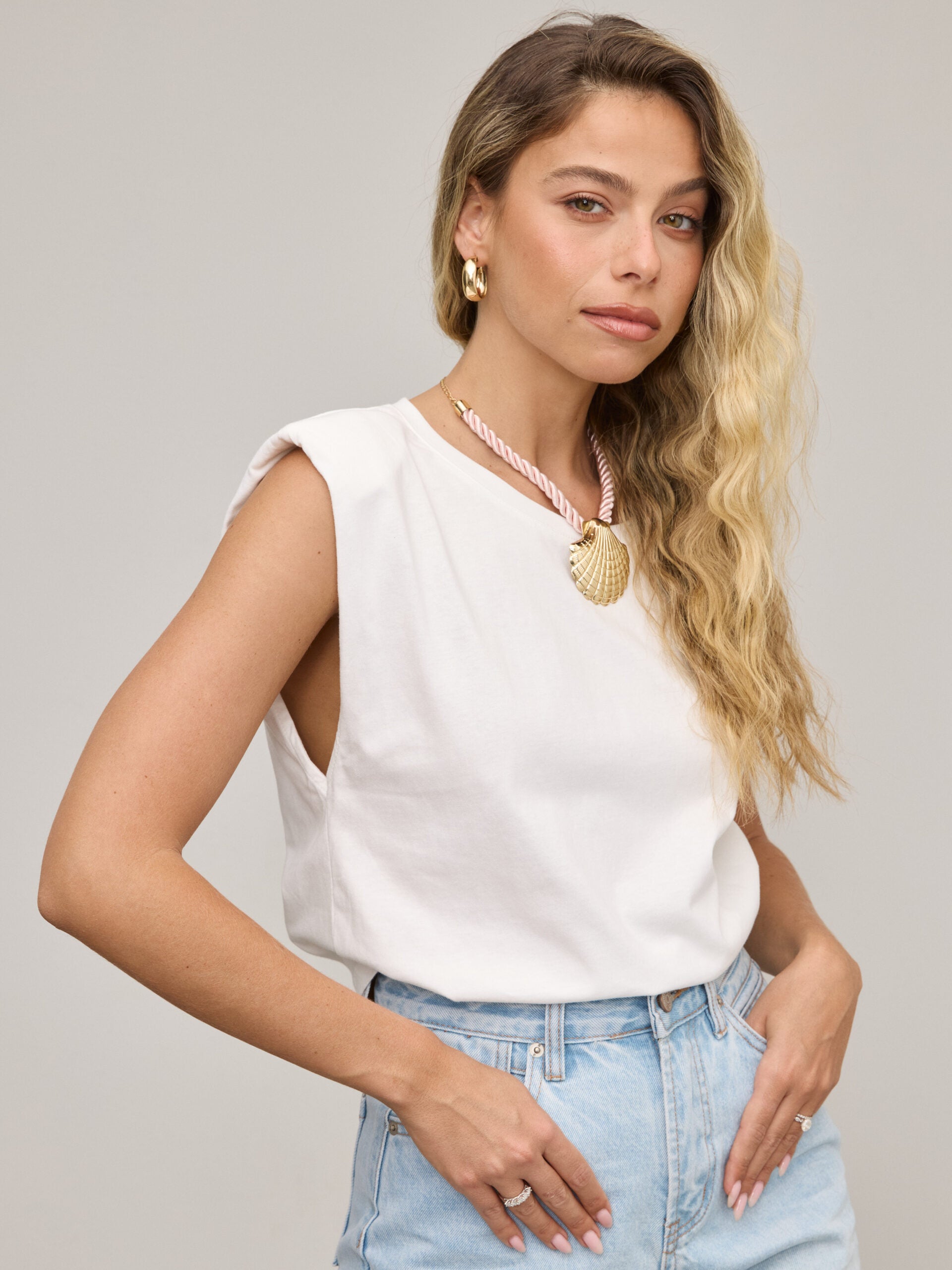 גופיית בייסיק עם כריות כתף מורי | לבן