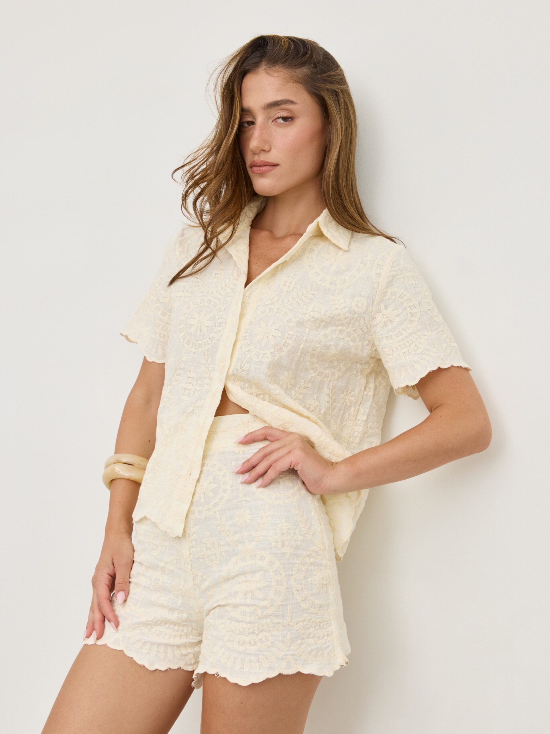 מכנסי תחרה קצרים סופי | שמנת