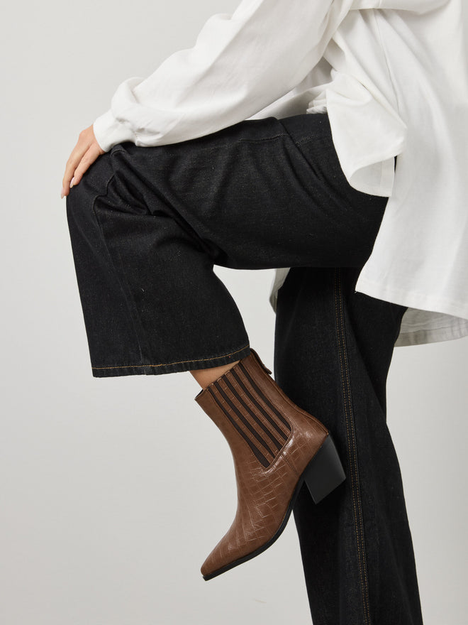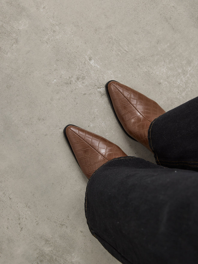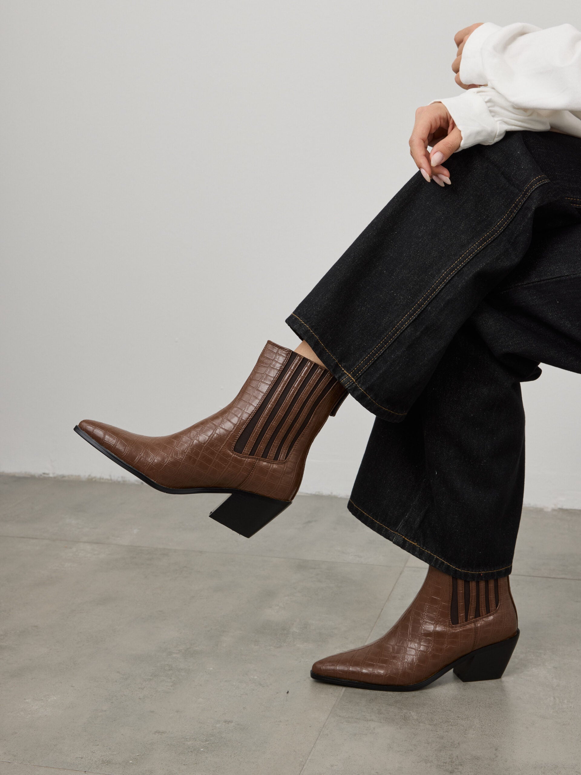 מגפוני עקב שפיץ טינה | חום קרוקו
