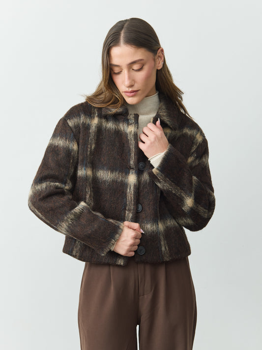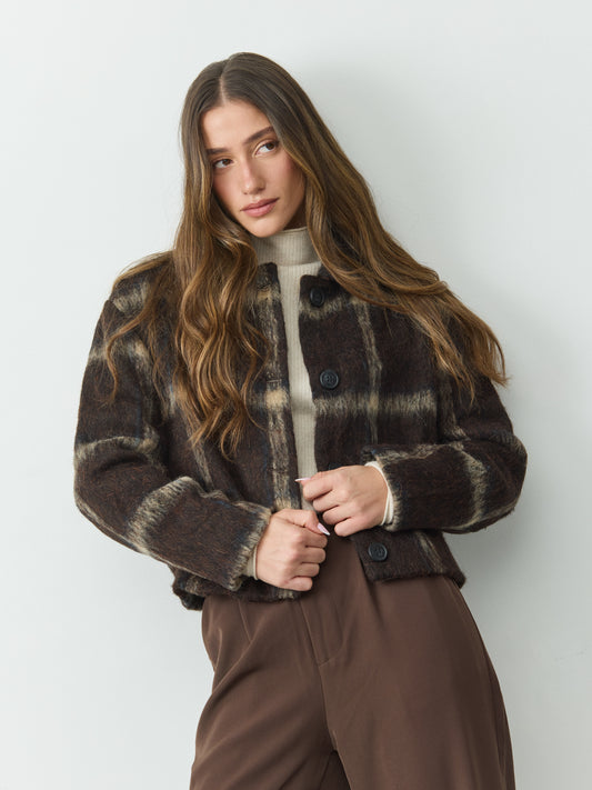 ג'קט קרופ משבצות מרסי | חום